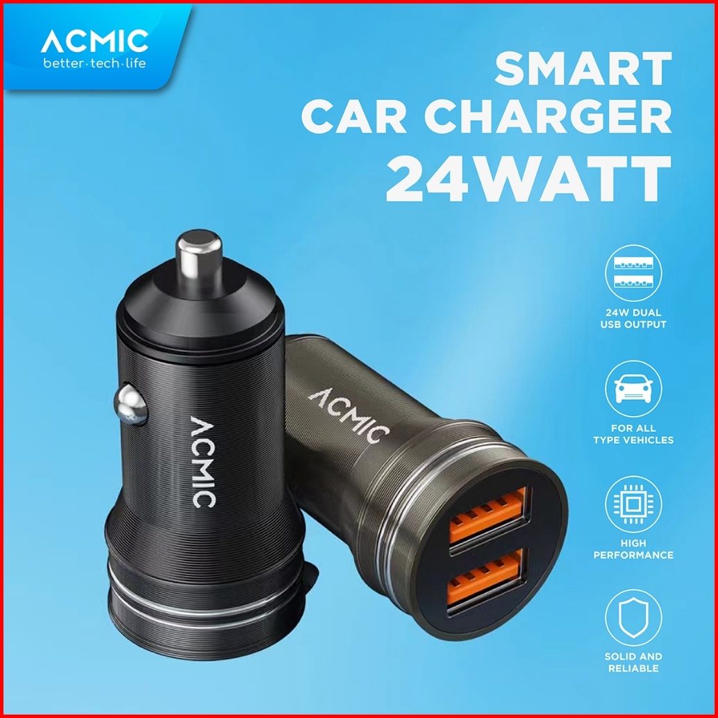 Acmic Cc02 Dual Usb 24 Watt Car Charger Fast Charging