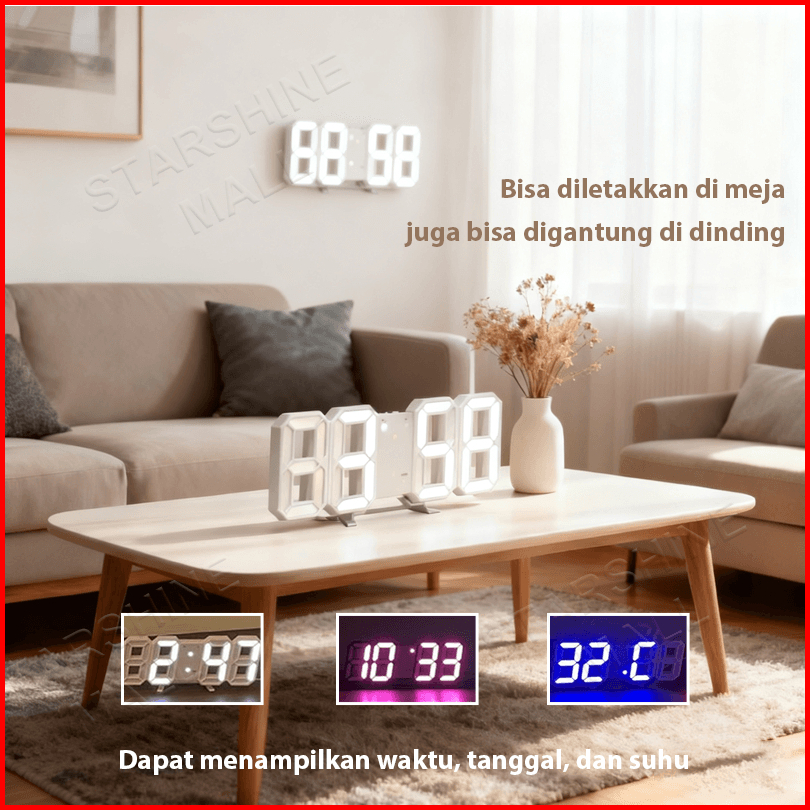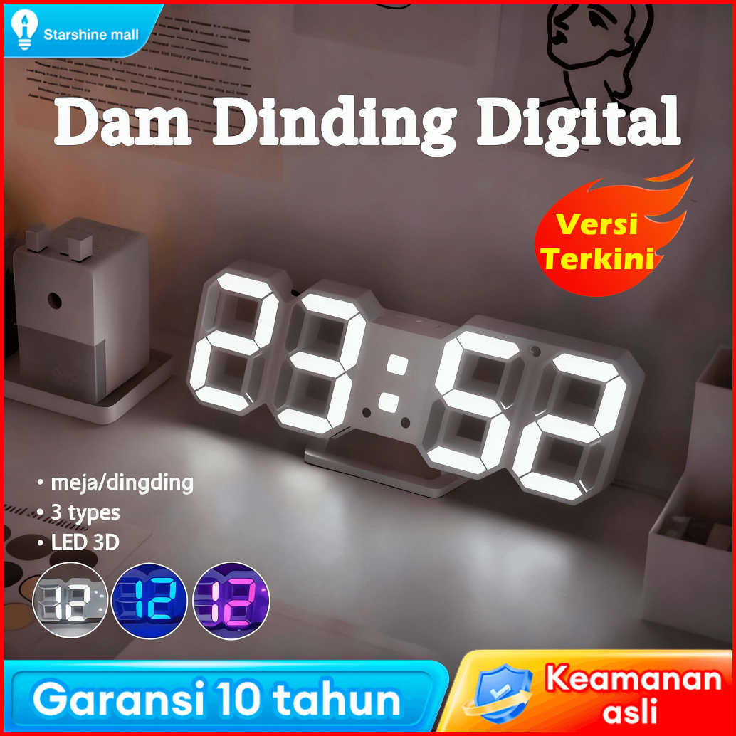 Jam Dinding Digital Led Jam Meja Led 3d Bentuk Angka Modern Minimalis Alarm Clock