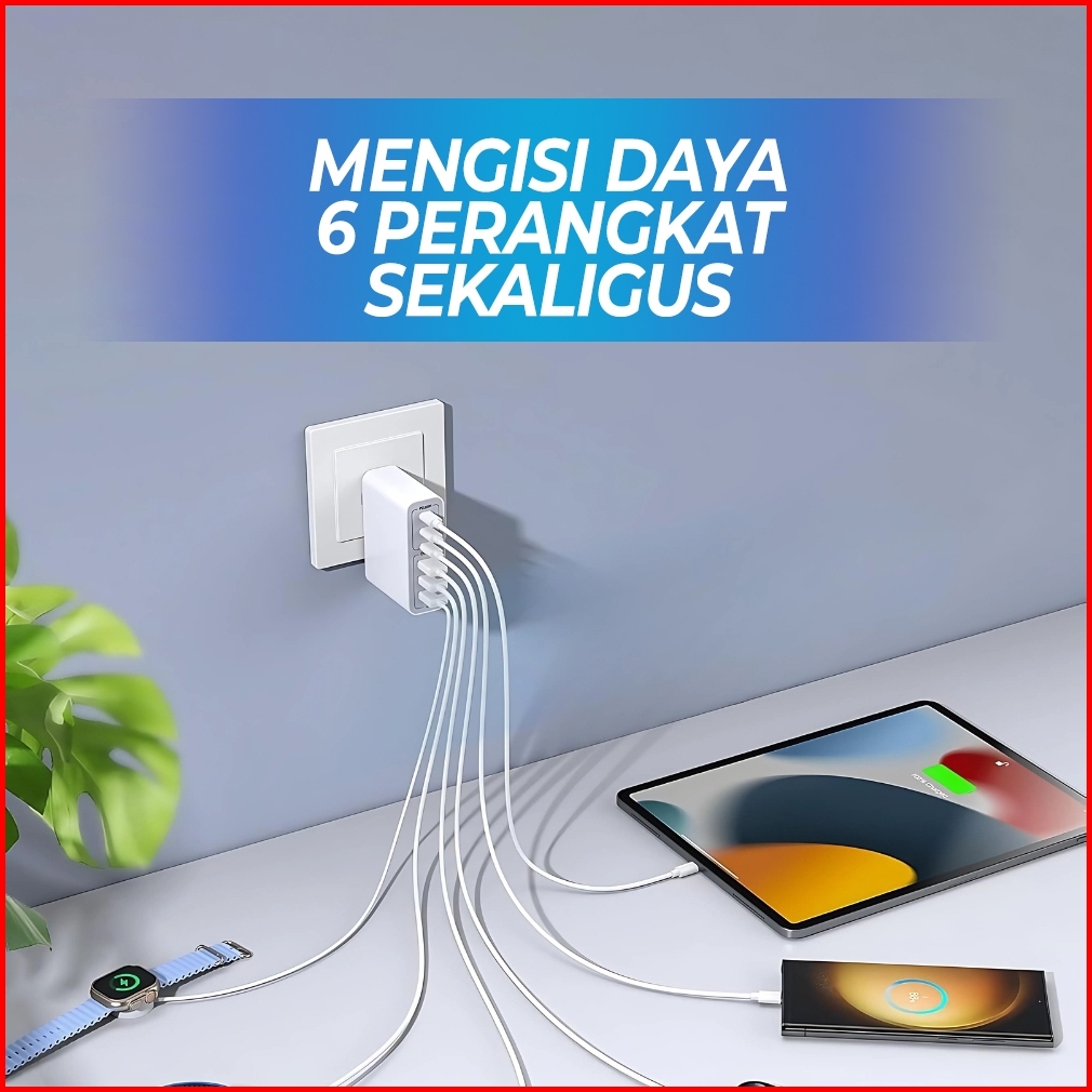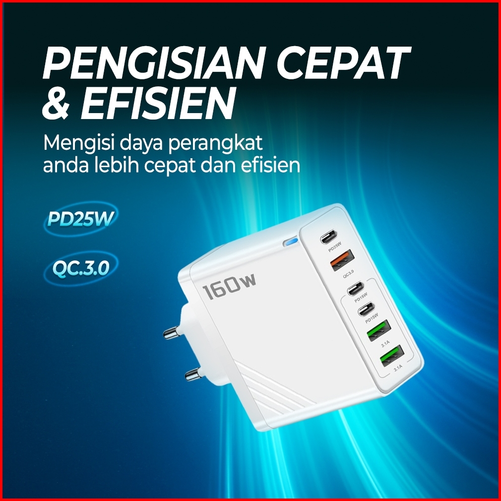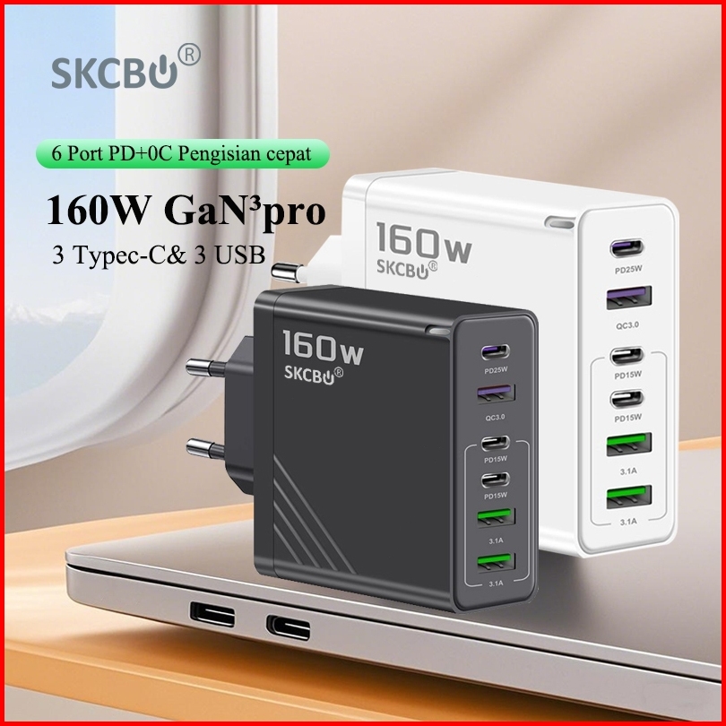 Skcbo 160w 6 In1 Kepala Charger Iphone Computer Laptop Fast Charging 3 Usb 3 Type C Pd Qc Adaptor Cas