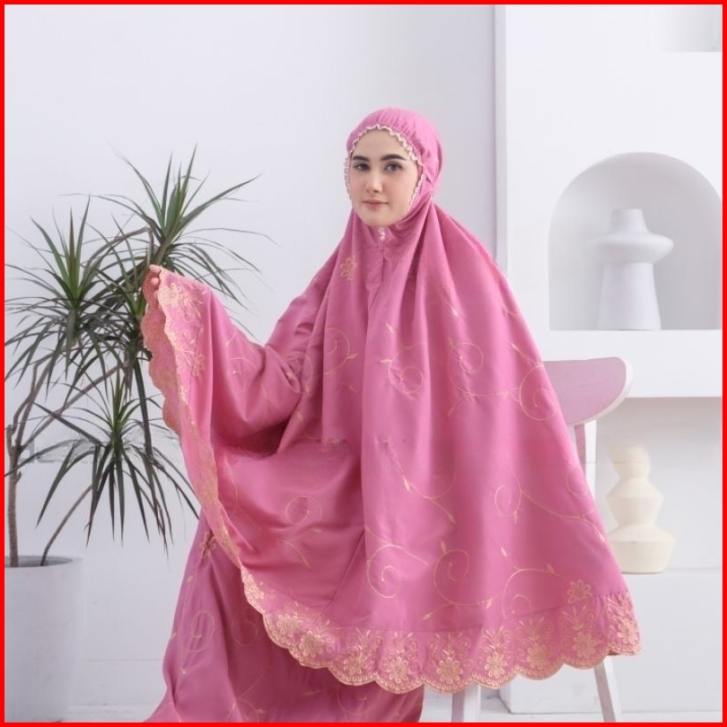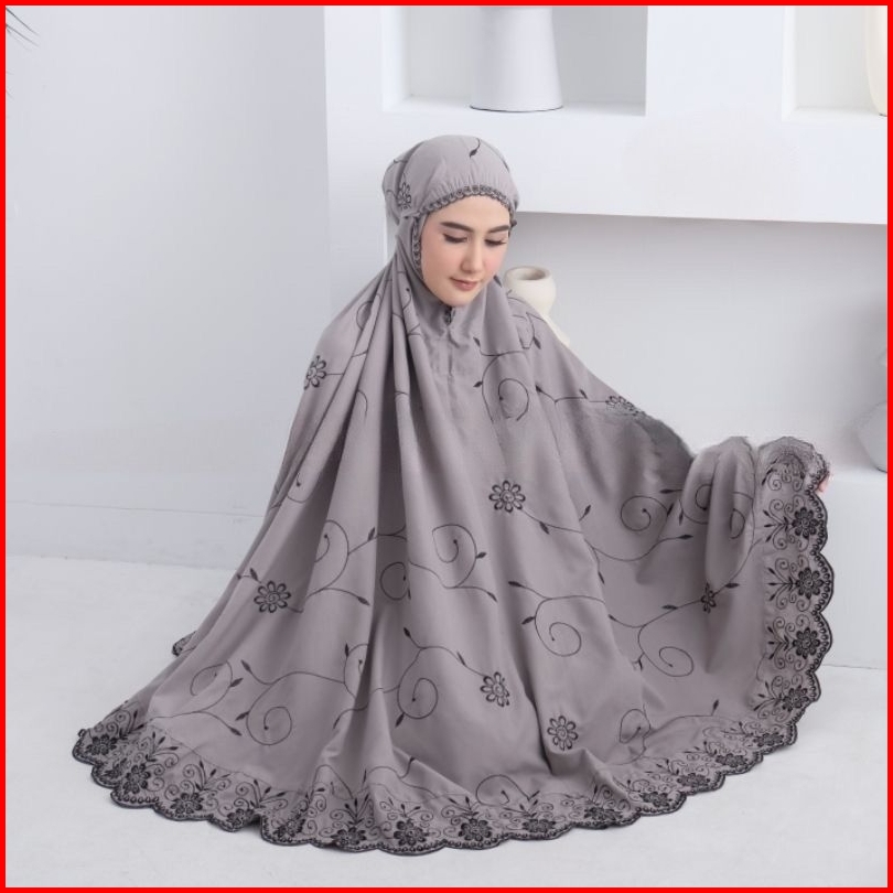 Mukena El Fatih - Mukena Dewasa Gracella Full Bordir Bunga Tratai Free Tas Bahan Katun Premium Lembut