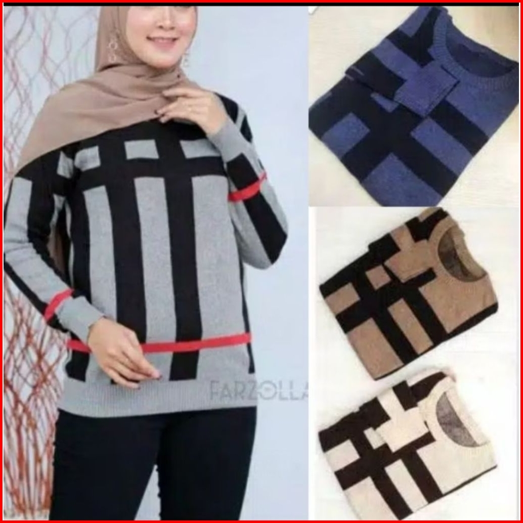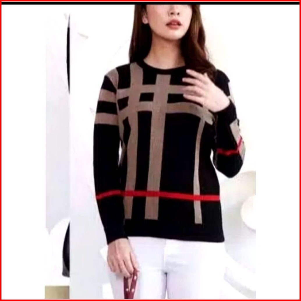 Blouse Rajut Kotak-kotak Allsize Warna Cream Hitam