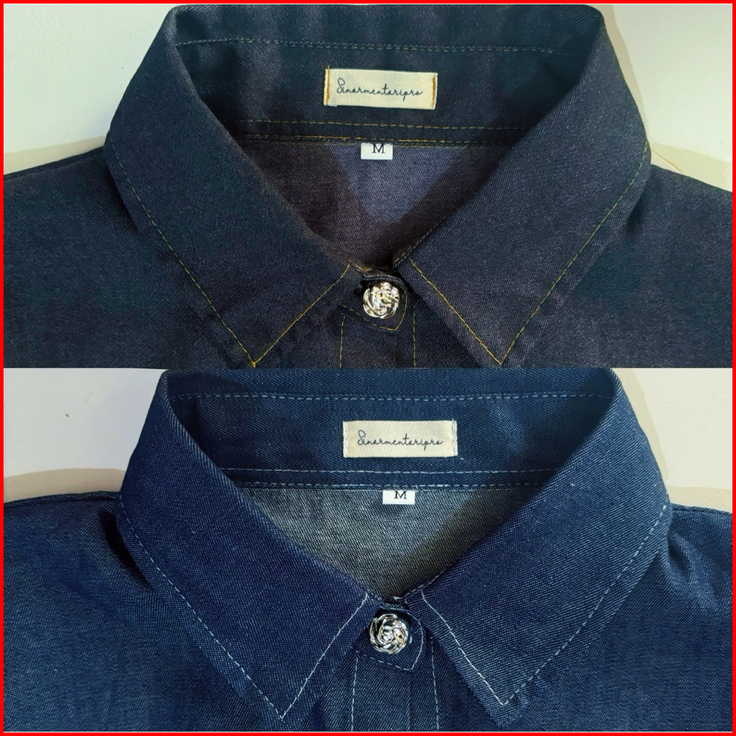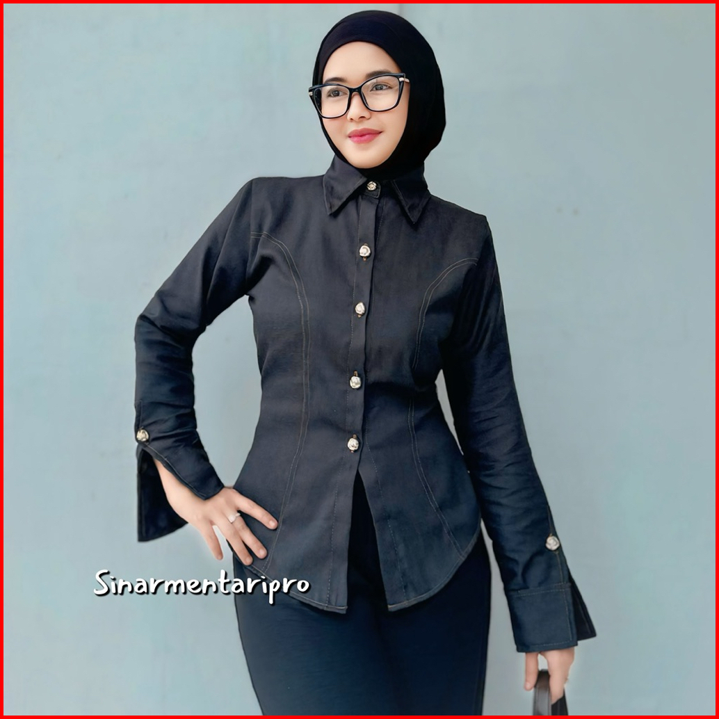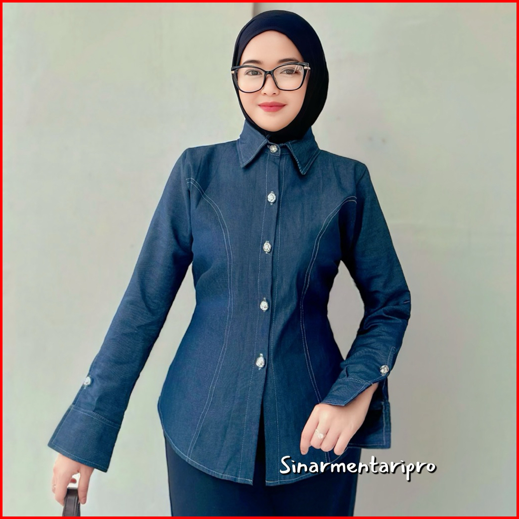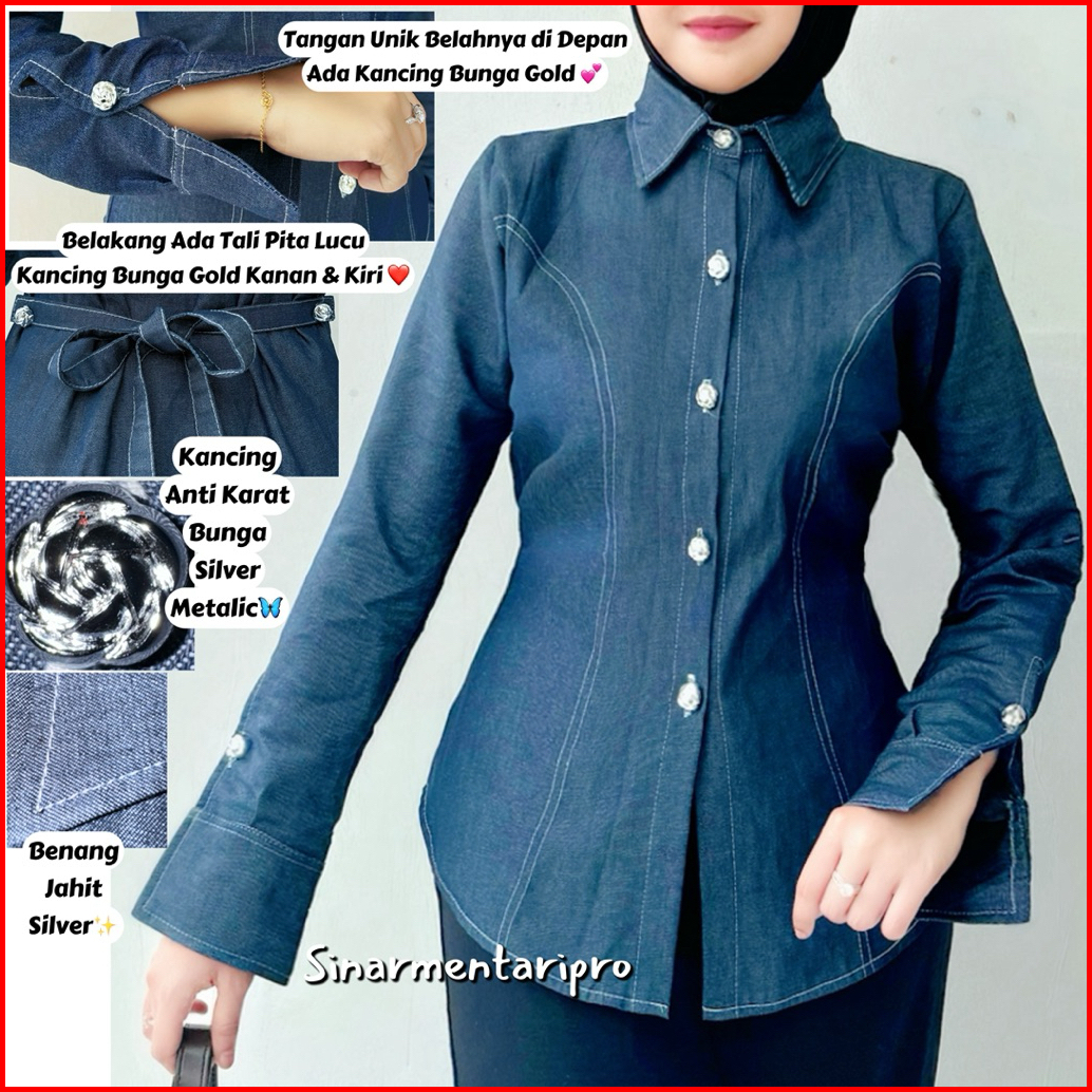 Smpro - Whispey Jeans Baju Kemeja Jeans Kancing Bunga Baju Atasan Wanita Jeans Tebal Tangan Panjang