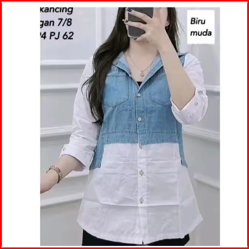 Sonia-kemeja Jeans Kombi Wanita Terbaru Atasan Wanita Bermotif Bangkok Korean Skinny