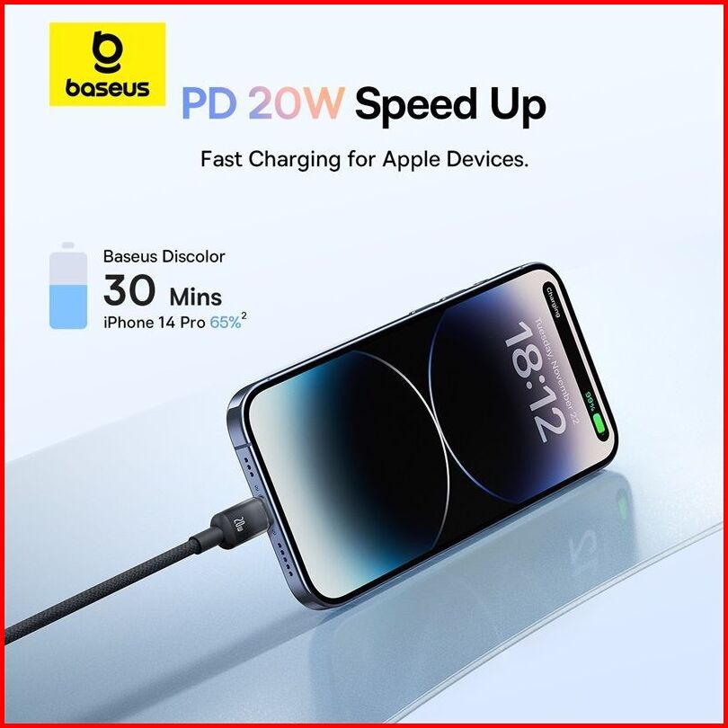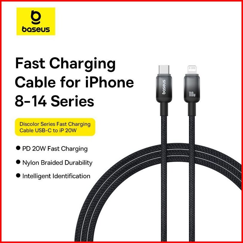 Baseus Kabel Data Type-c To Ip Lighting 20w Discolor Series Fast Charging Cable 1m 2m