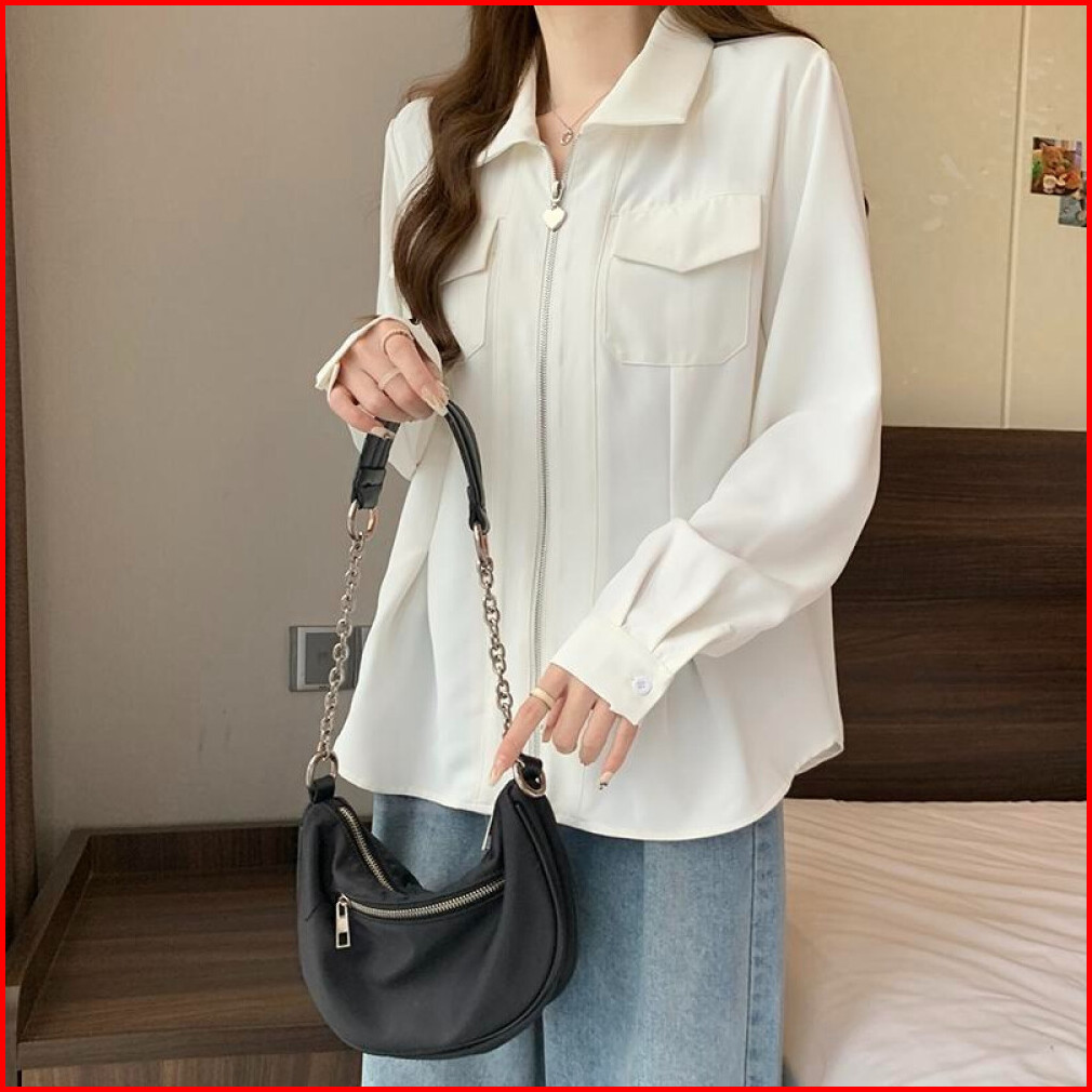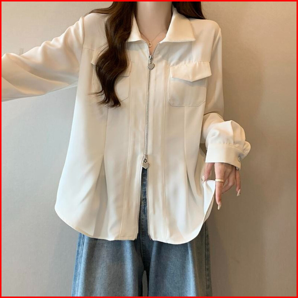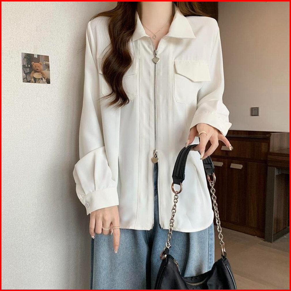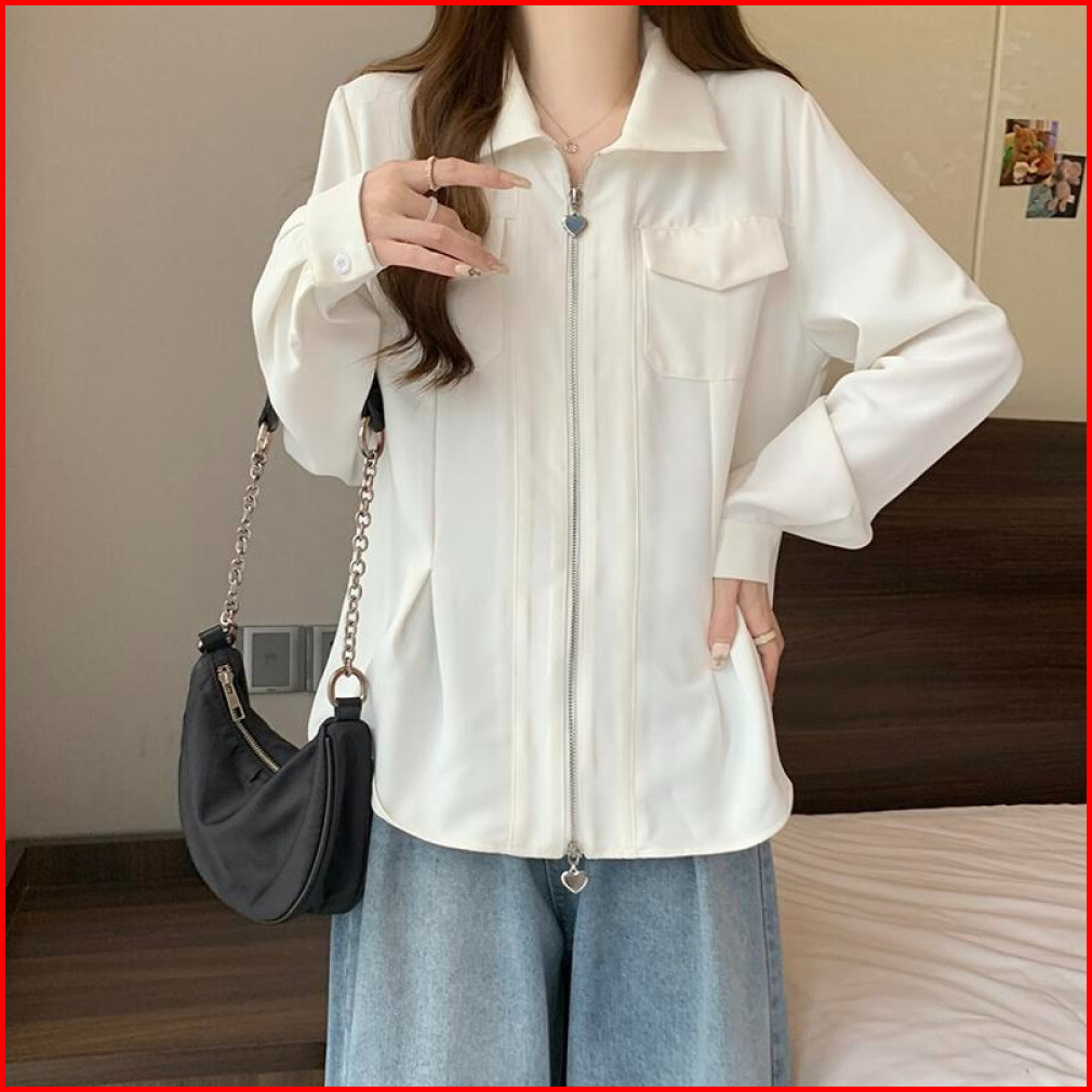 Ready Stockatasan Wanita Putih Kerah Resleting Depan Original By Classfit Elemen Love Aktif Korean Style Fashion Kekinia