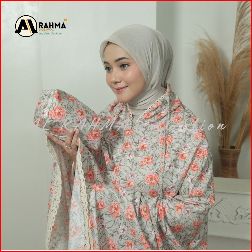Al Rahma - Mukena Dewasa Traveling Motif 2in1 Resleting Katun Premium Jumbo Renda Cantik
