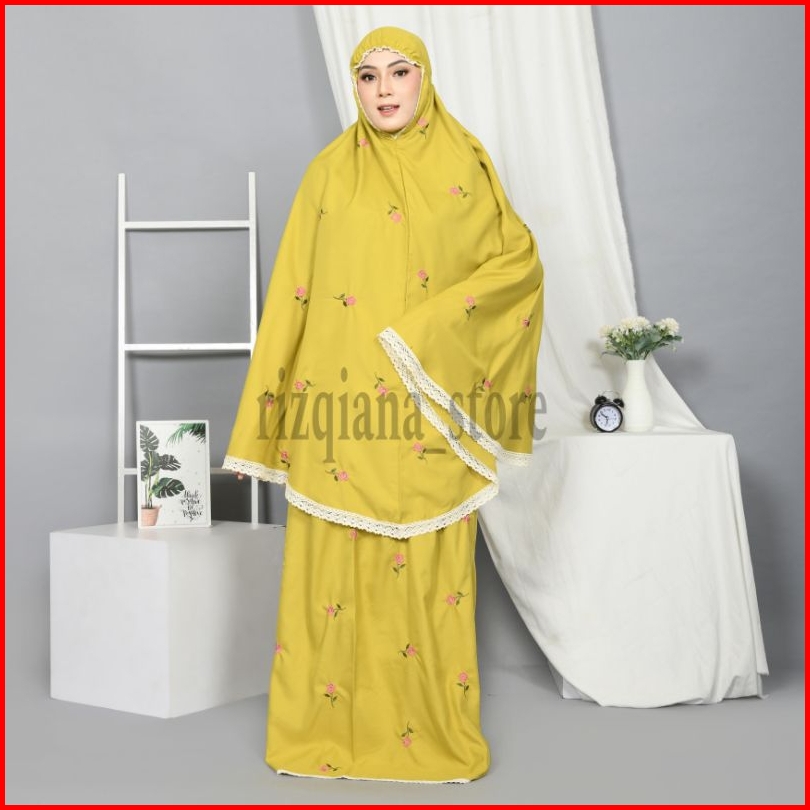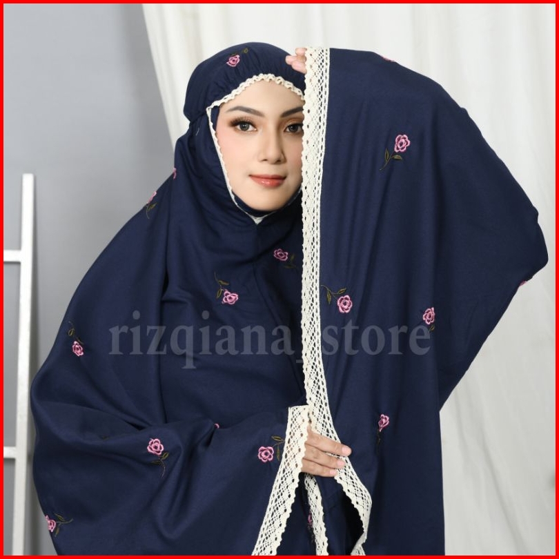 Rizqiana Store - Mukena Dewasa Katun Premium Bordir Bunga Aster Free Tas Pouch