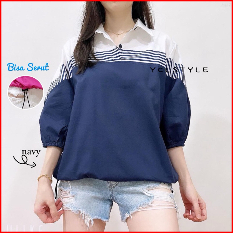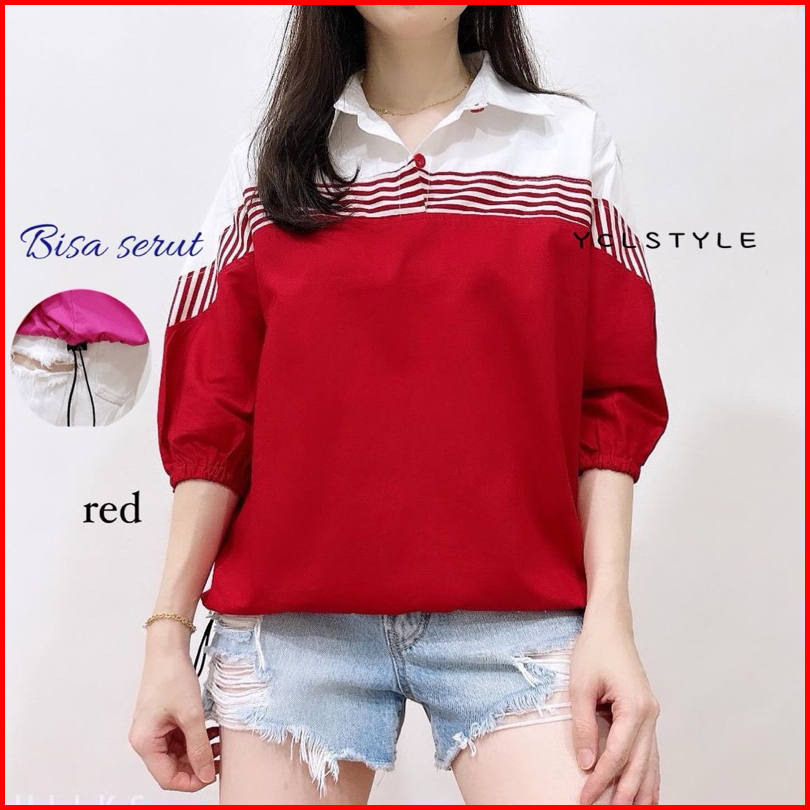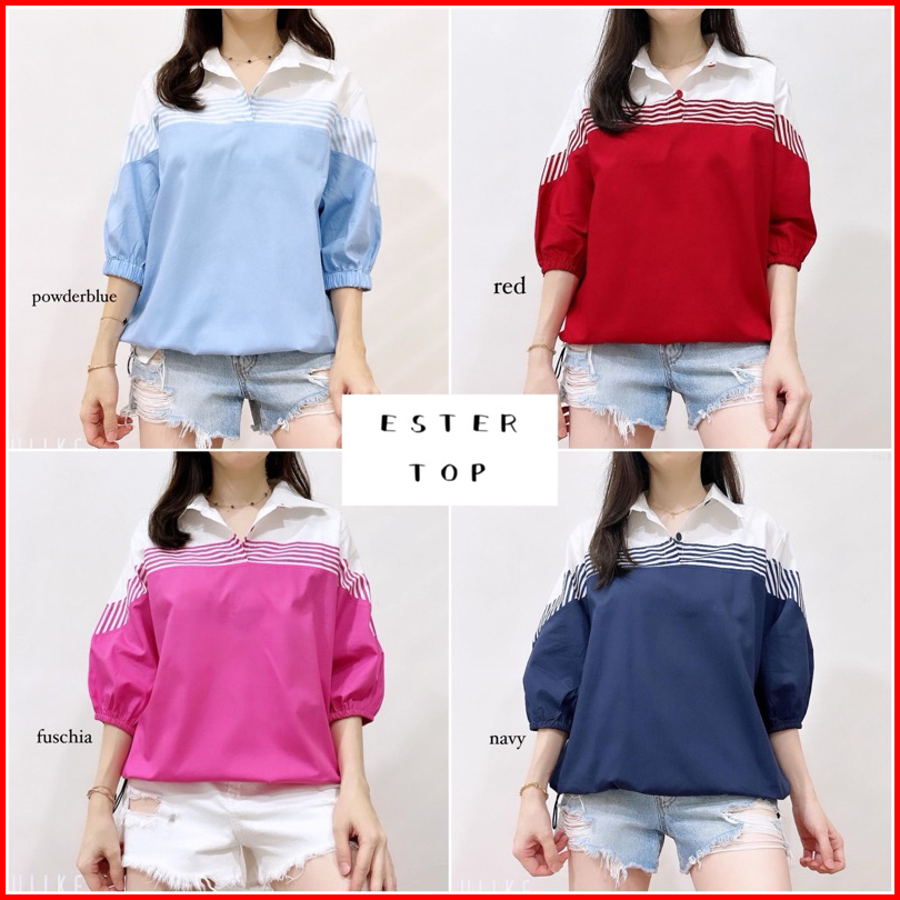 Ester Top - Atasan Kombinasi Salur Wanita Katun