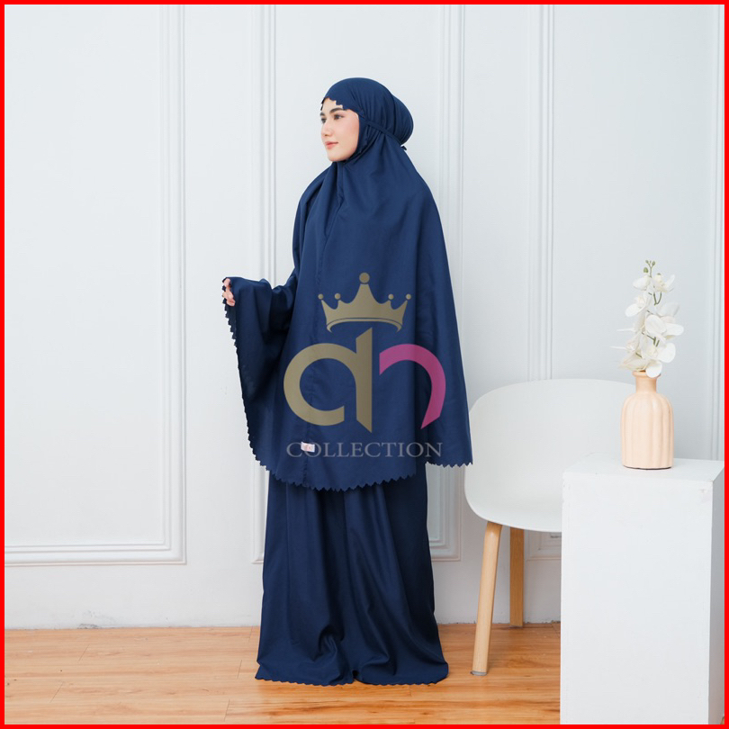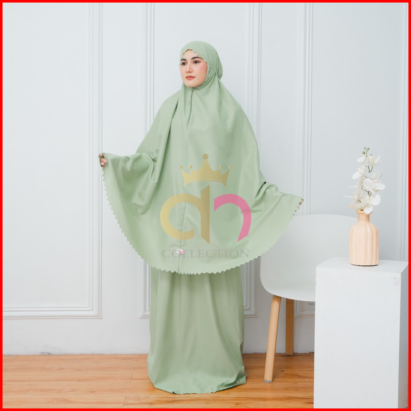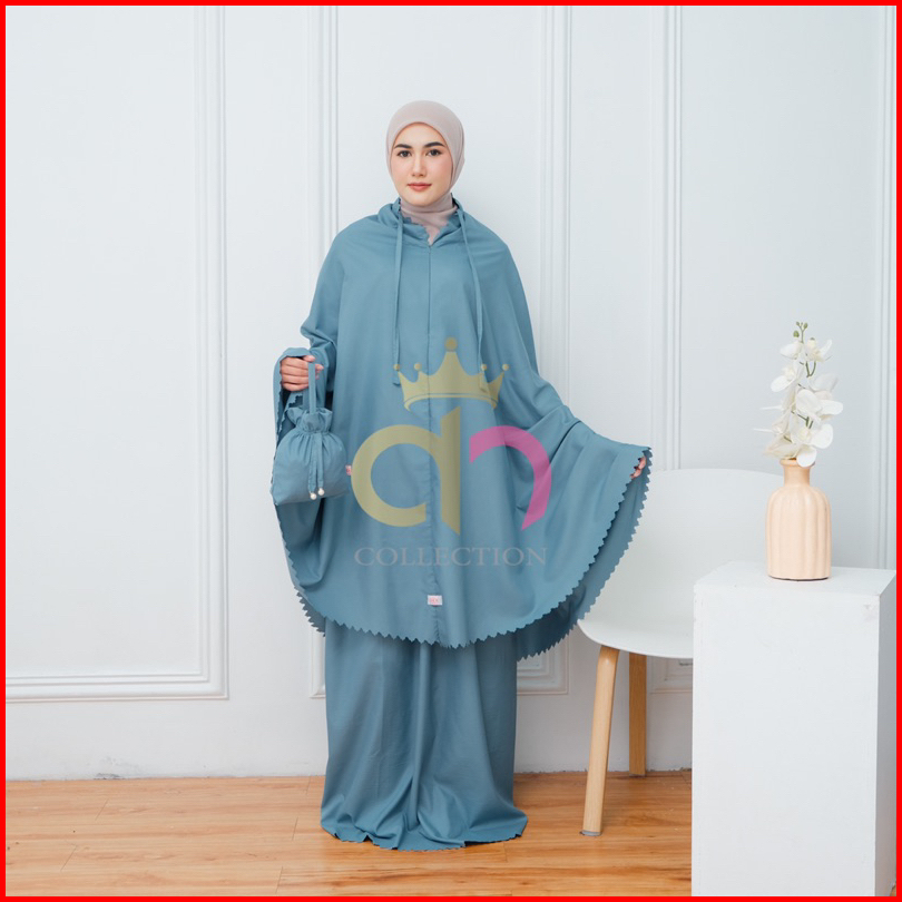 Queensha Mukena Traveling Polos Dewasa Terbaru Laser Cut 2in1 Resleting Katun Inport Free Tas Pouch Serut Mutiara