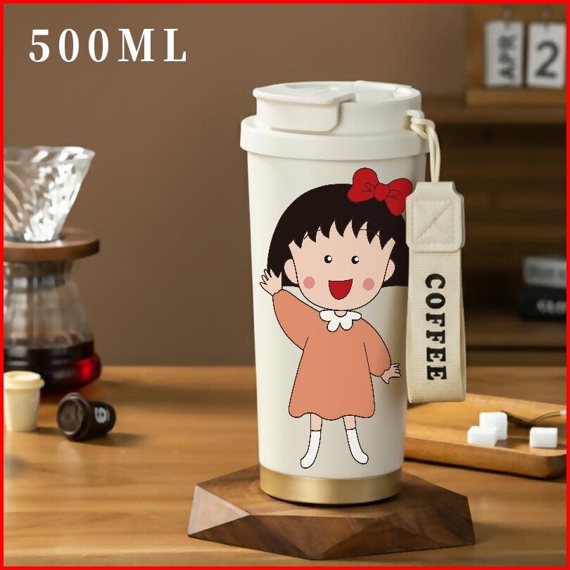 Tumbler Chibi Maruko-chan Sakura Momoko Botol Minum Aesthetic Stainless Steel Tumblr Cup 500 Ml Termos Coffee Tahan Ding