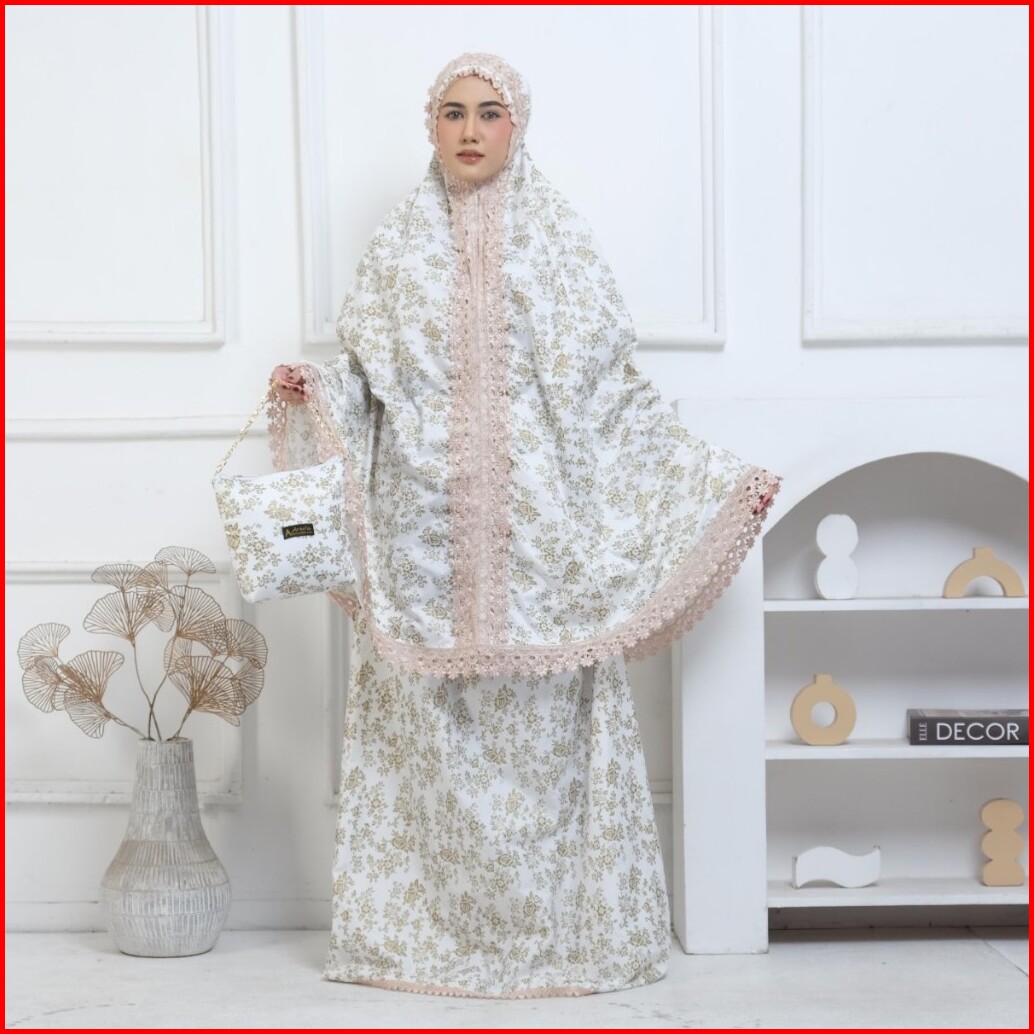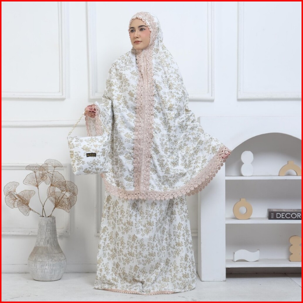 Arbifa Bilqis Mukena Dewasa 2in1 Katun Foil Jumbo Renda Ziper Mewah