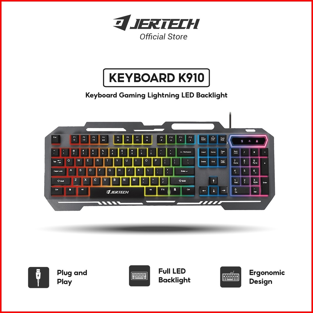 Jertech Keyboard Gaming Kabel Usb K910 Lightning Full Size Led Backlight
