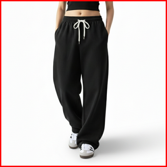 Afd Celana Sweatpants Loose Baggy Fleece Wanita Hitam