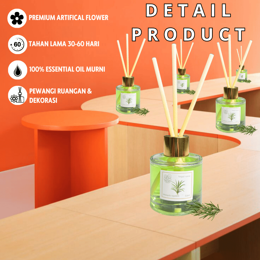 Fumu Aromaterapi Reed Diffuser Pewangi RBiayaan Pengusir nyamuk 50ml Aromatheraphy Mewah Premium
