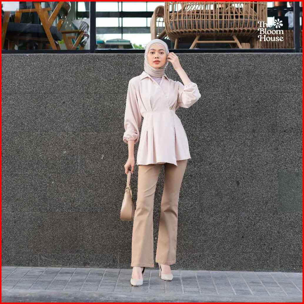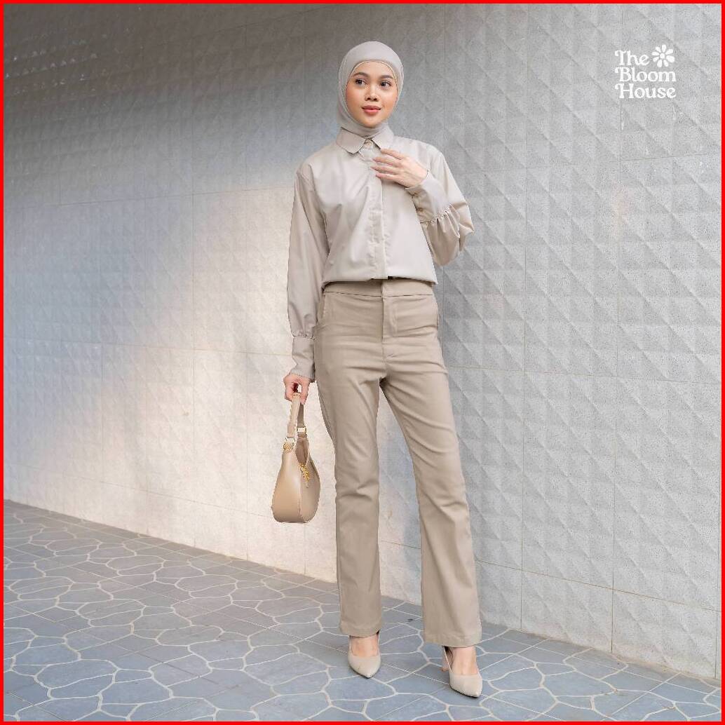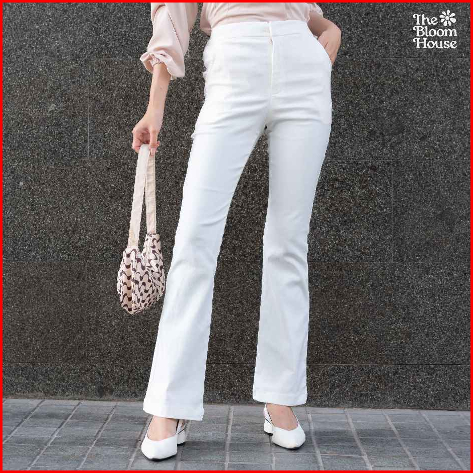 Rosetta Flare Pants Cotton Celana Wanita Highwaist Semi Cutbray Katun Stretch - The Bloom House B733