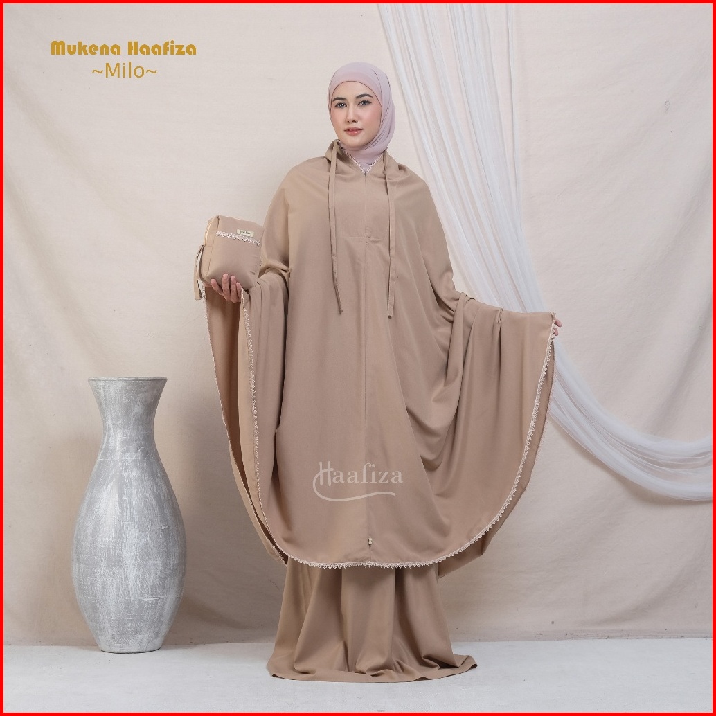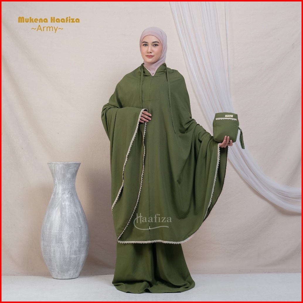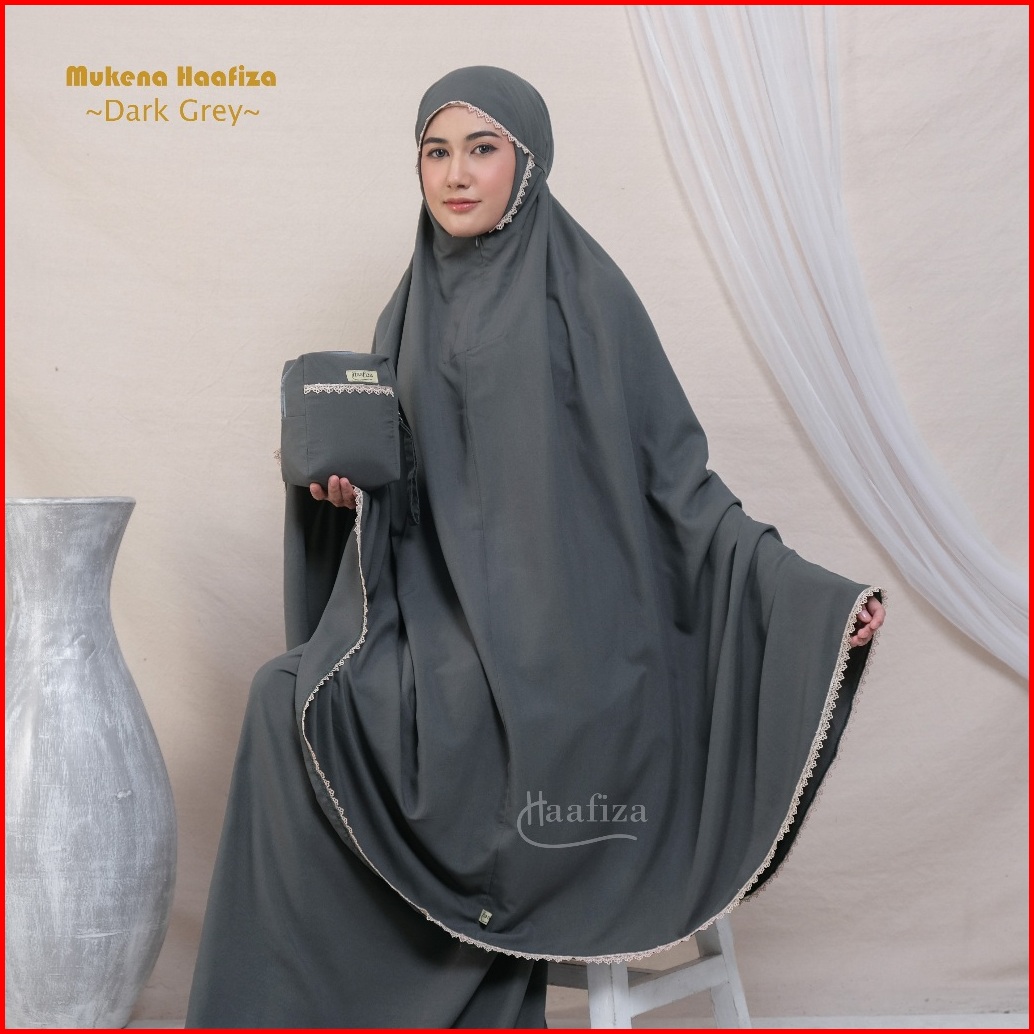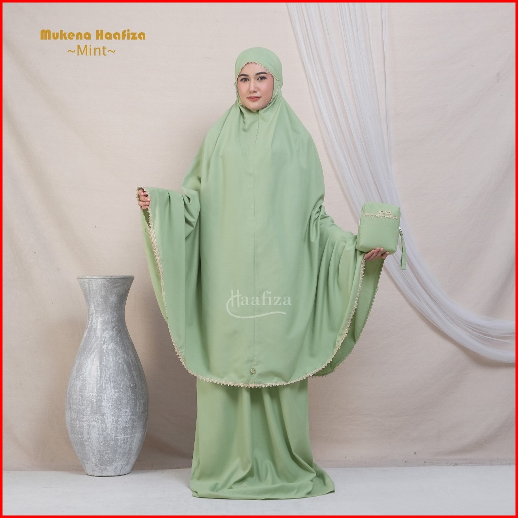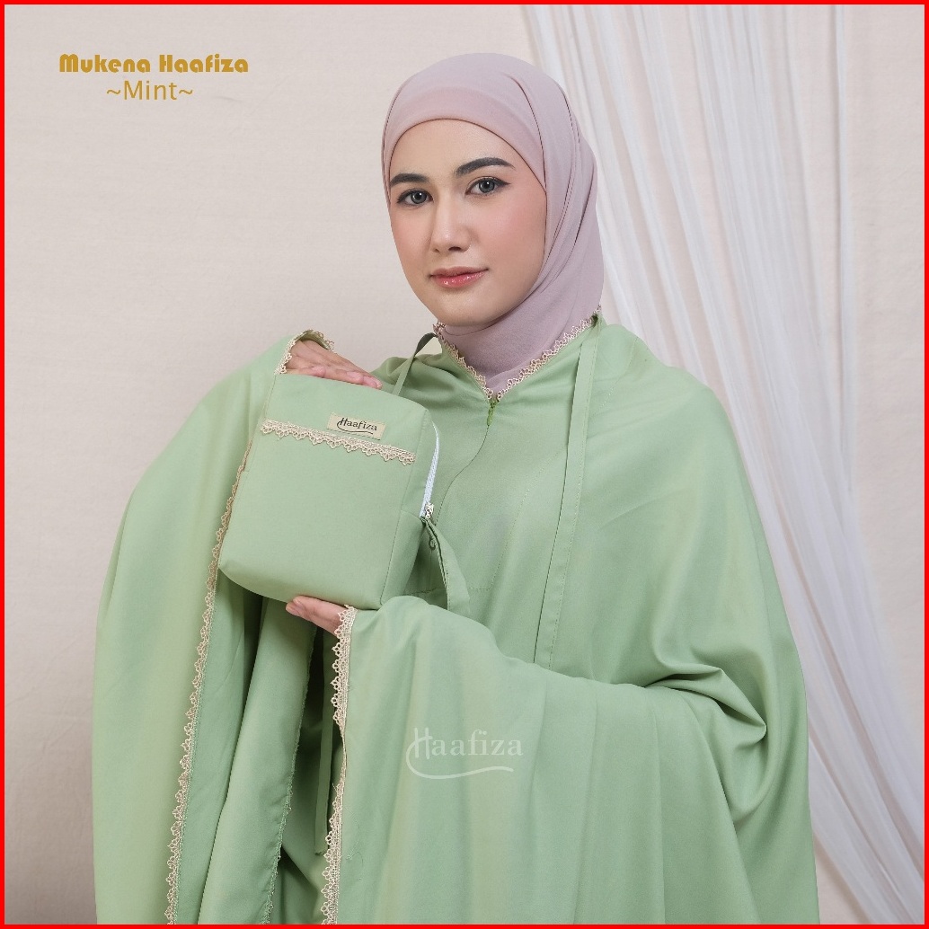 Mukena Haafiza Katun Mikro Renda Traveling Dewasa Jumbo Mini Pouch Series 2in1 Resleting