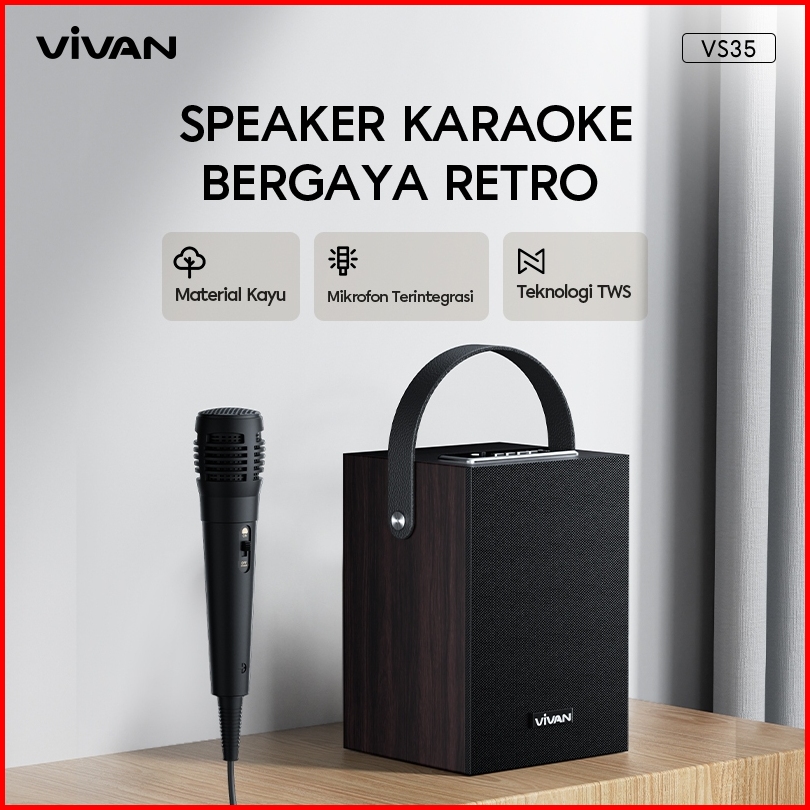 Vivan Speaker Karaoke Vs35 Bluetooth V5.3 Tws Connect Material Kayu Include Microphone Garansi 1 Th