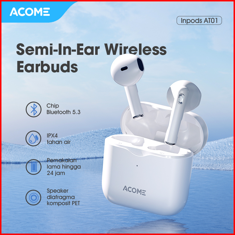 Vivan X Acome Headset Earphone Tws Bluetooth 5.3 Ipx4 Waterproof 3 Gram Ultra Light Inpods At01 Garansi Resmi 1 Tahun