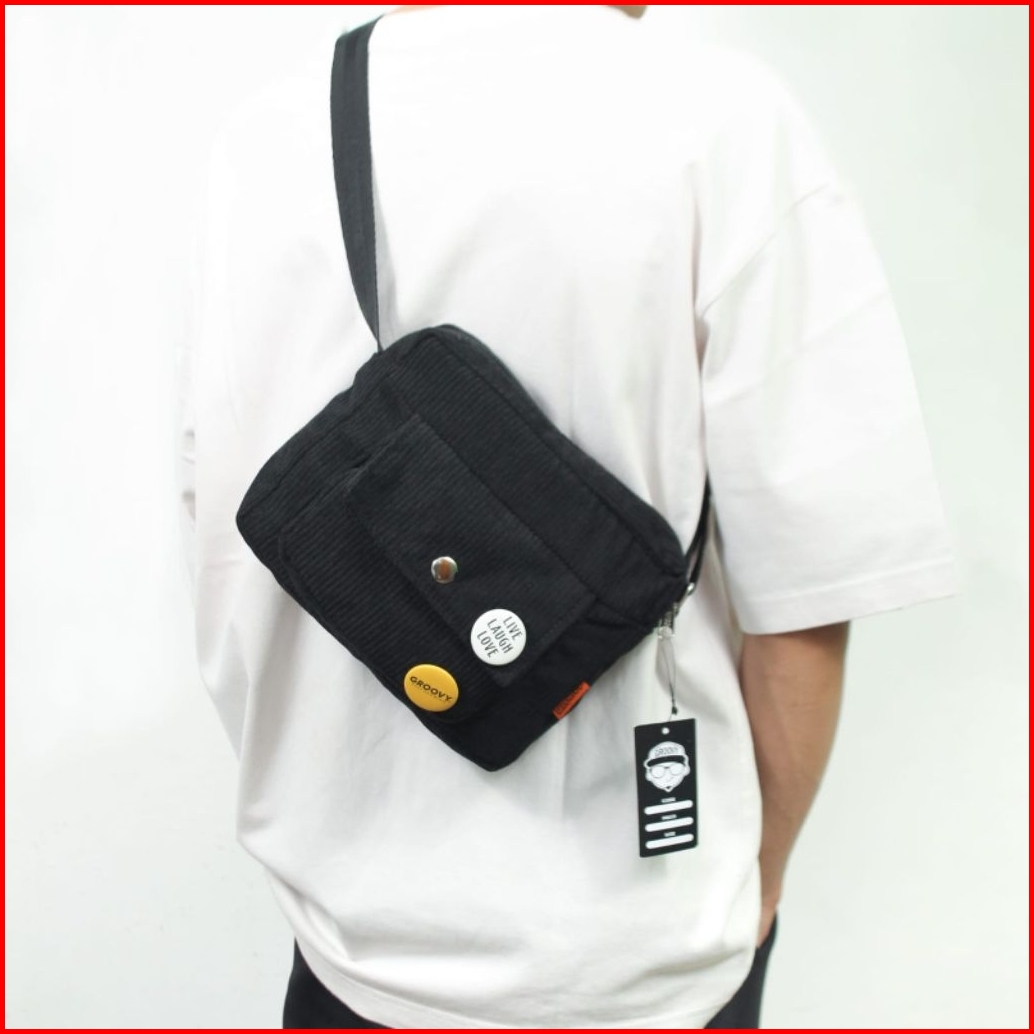 Tas Selempang Corduroy Groovy 19059 Tas Selempang Pria Wanita Slingbag