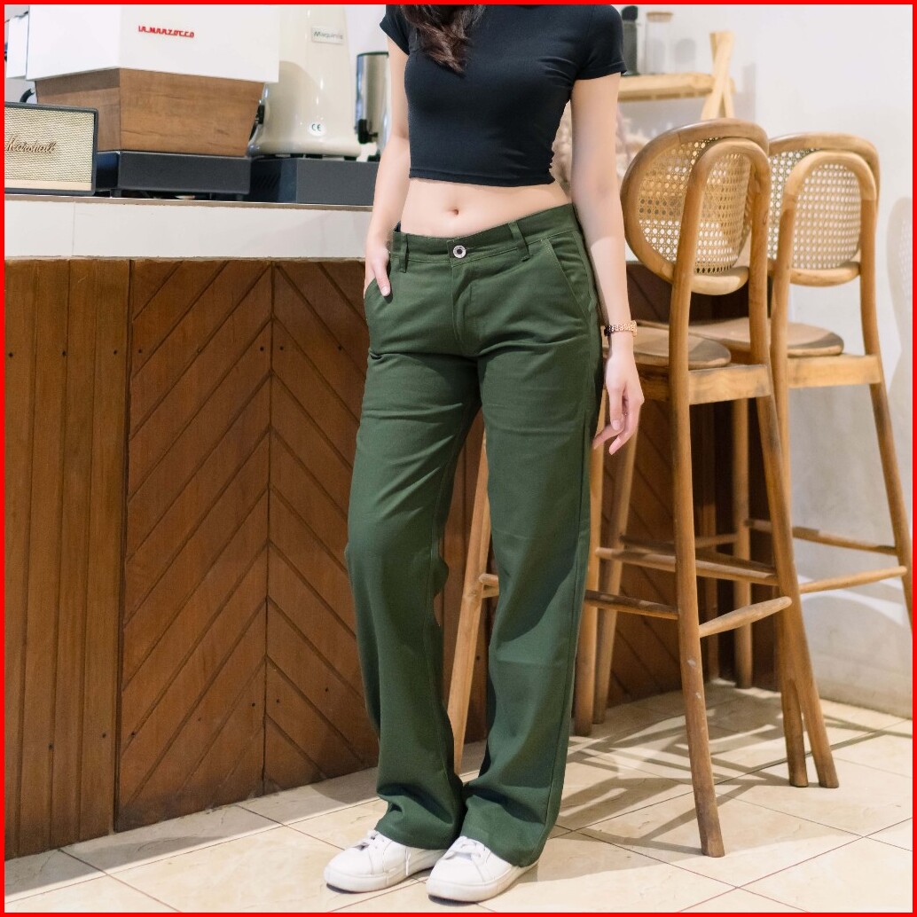Celana Chino Wanita - Celana Katun Canvas Wanita - Chino Loose Pants Wanita Bahan Tebal Nonstrit