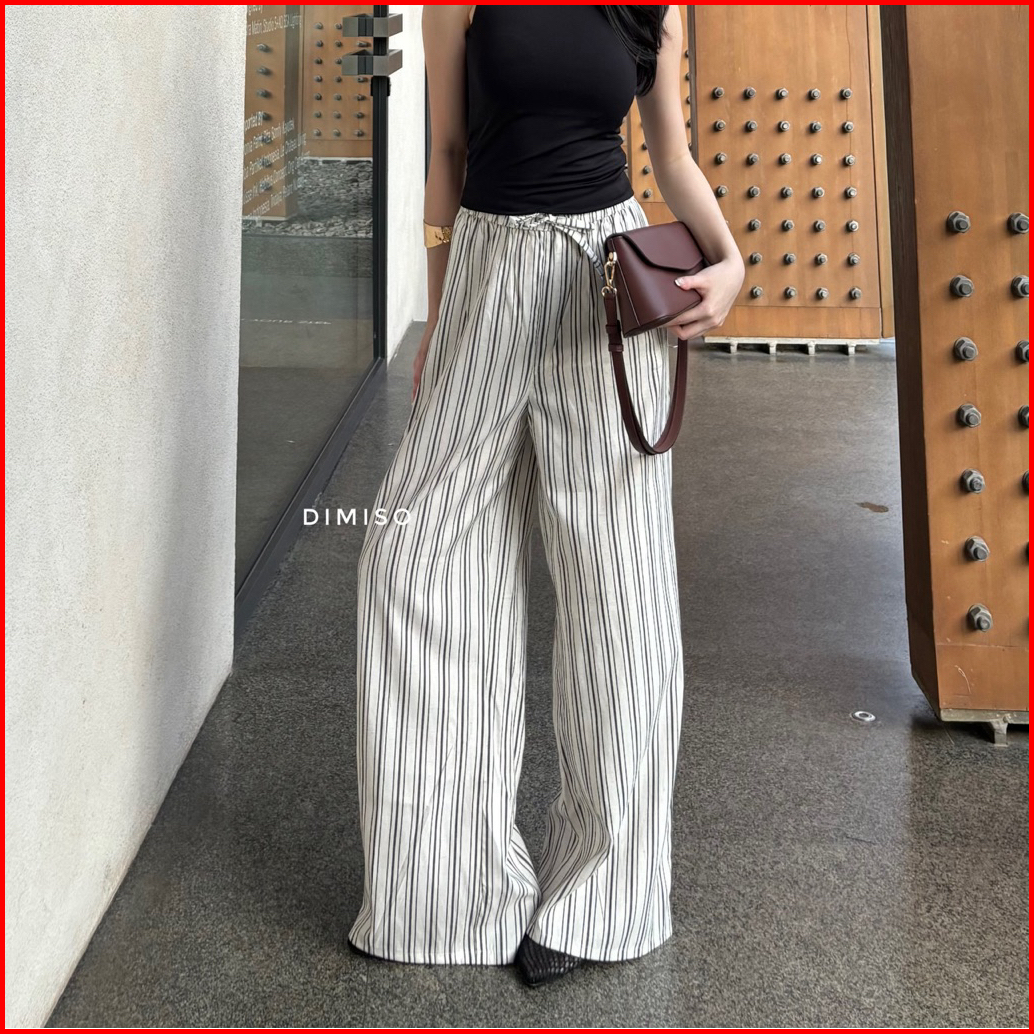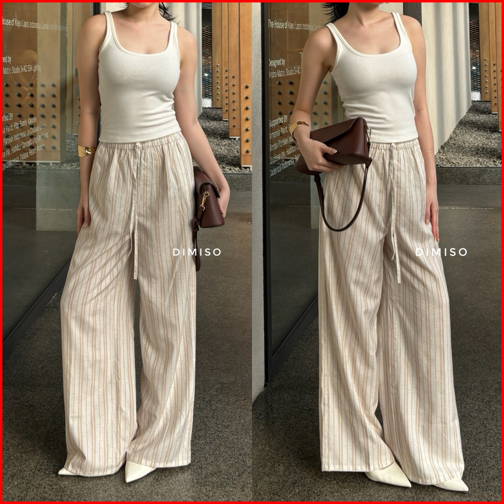 Dimiso - Daily Pants Linen - Stripe Pants - Celana Pure Linen - Celana Panjang Wanita - Celana Baggy Wanita - Celana Str