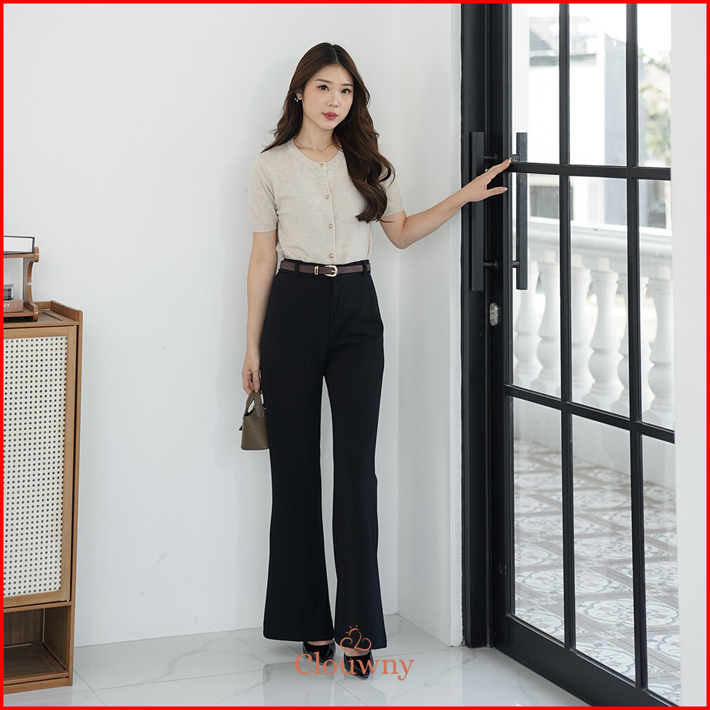 Clouwny Kino Cutbray Pants Bawahan Celana Panjang Kantor Formal Wanita Simple Classy Stretch Fit To Xxl