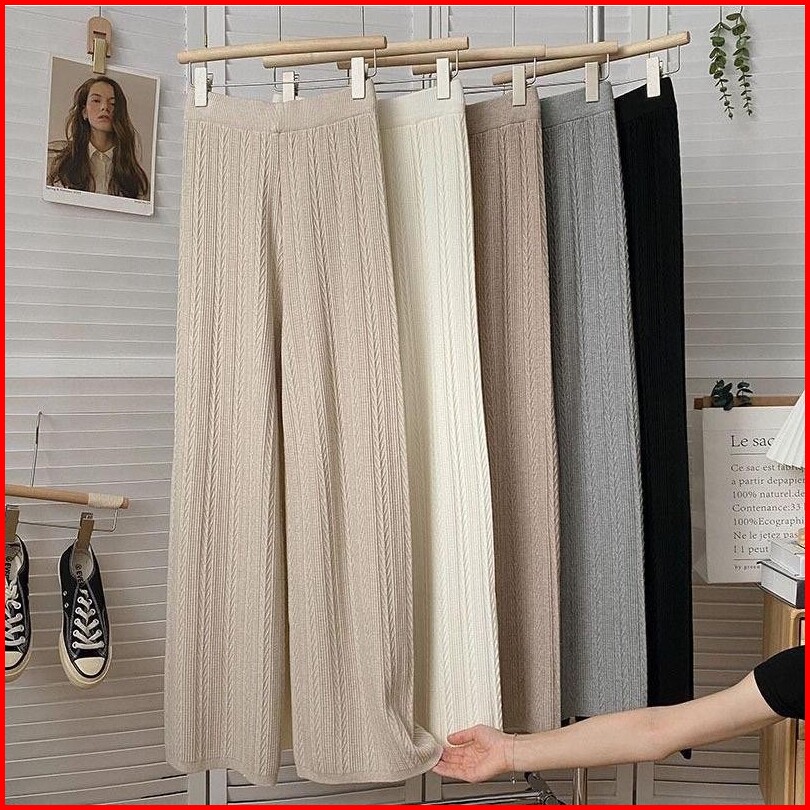 Chatta - Daeun Pants Celana Kulot Panjang Tekstur Rajut Cullote Knit Textured Hitam Abu Khaki Putih