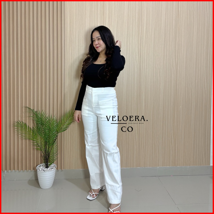 Veloera.co Karla - Basic Culotte Pants Strech Premium Soft Jeans Free Belt Celana Panjang Kulot Casual Wanita Highwaist