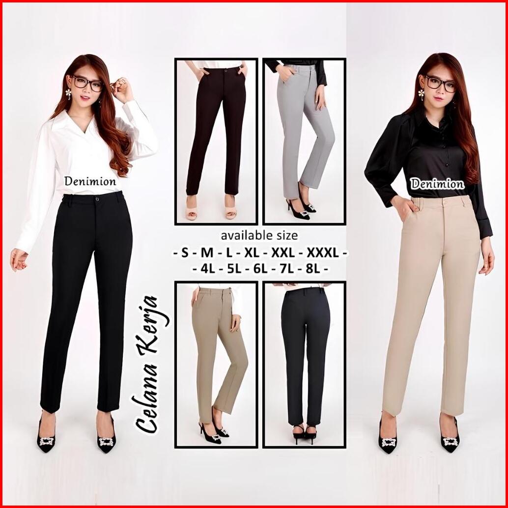 Size S - 8l Celana Kantor Wanita Bahan Katun Celana Kerja Formal Denimion