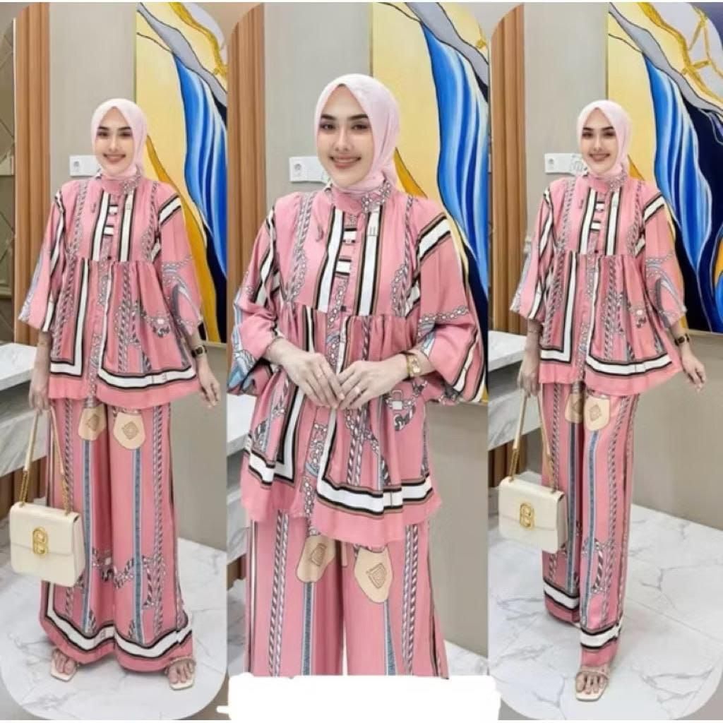 setelan wanita kekinian LEODRA VALENCIA oneset wanita kekinian bahan rayon premium motif terbaru