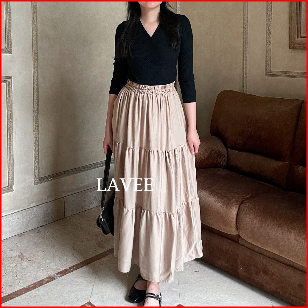 Lavee - Tiffany Skirt Rok Panjang Wanita Maxi Rayon Flowy Basic - Rok 3 Susun Aesthetic