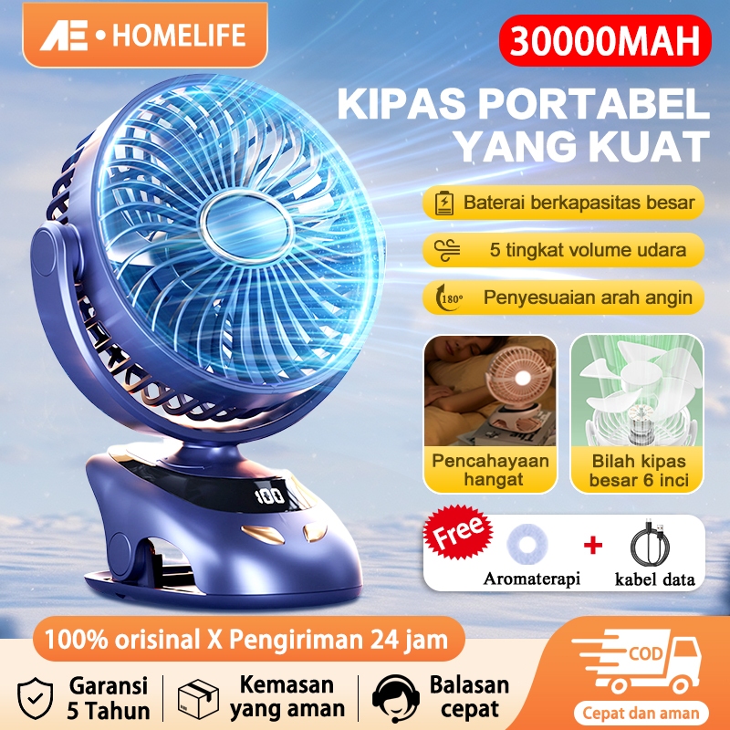 AE 30000mAh Kipas Angin Portable Mini Jepit Meja Usb Mini Fan Aromaterapi LED Display Kipas Bilah Kipas Besar 6 Inci
