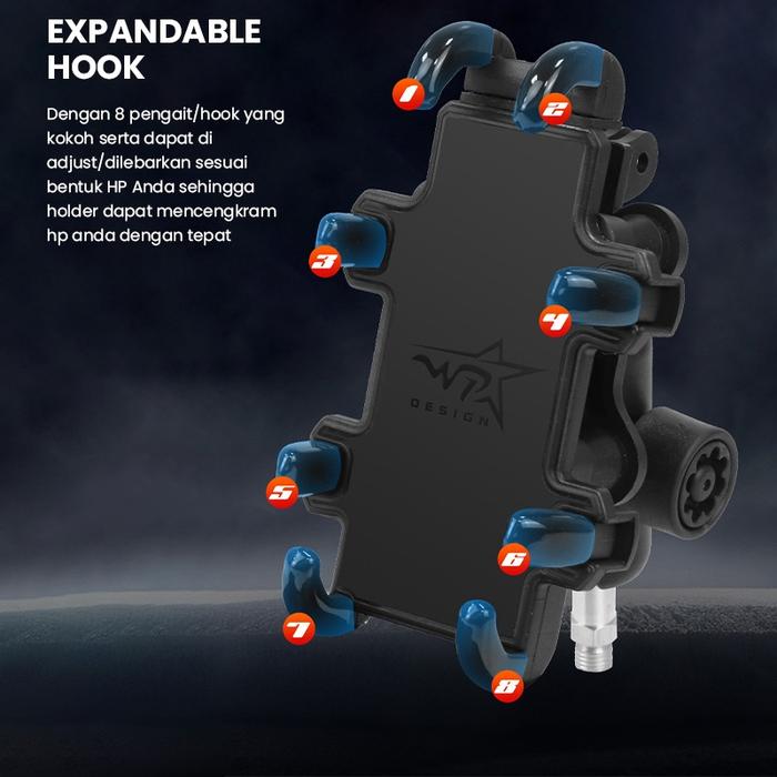 Holder Handphone Motor Premium Design (bahan Besi) 8 hook