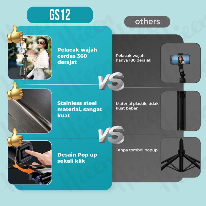 1800mmHieen Tripod Tongsis Lacak Wajah Face Tracking Tripod 1.8m Remote Bluetooth Tongkat Selfie