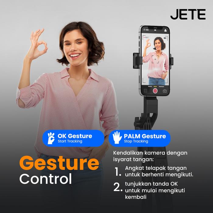 Tripod Bluetooth JETE H15 AI Portable Tongsis Auto Face Tracking Selfie Stick 1.8m With Postel