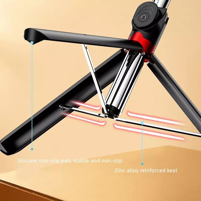 Tongsis Tripod Original P100 1.8 Meter Aluminium Alloy Black plus lighting View 2 LED Bluetooth