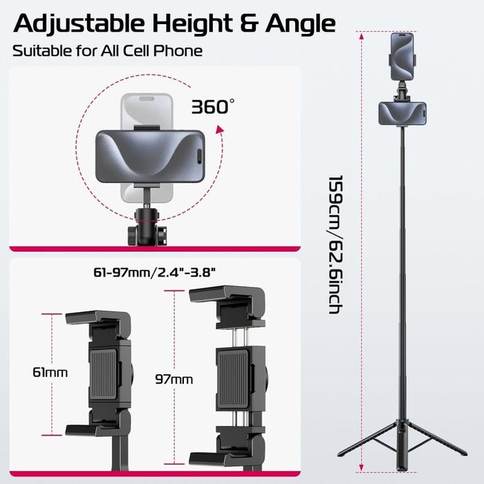 ULANZI MT-70 Extendable Travel Tripod Selfie Stick with Bluetooth Shutter Remote