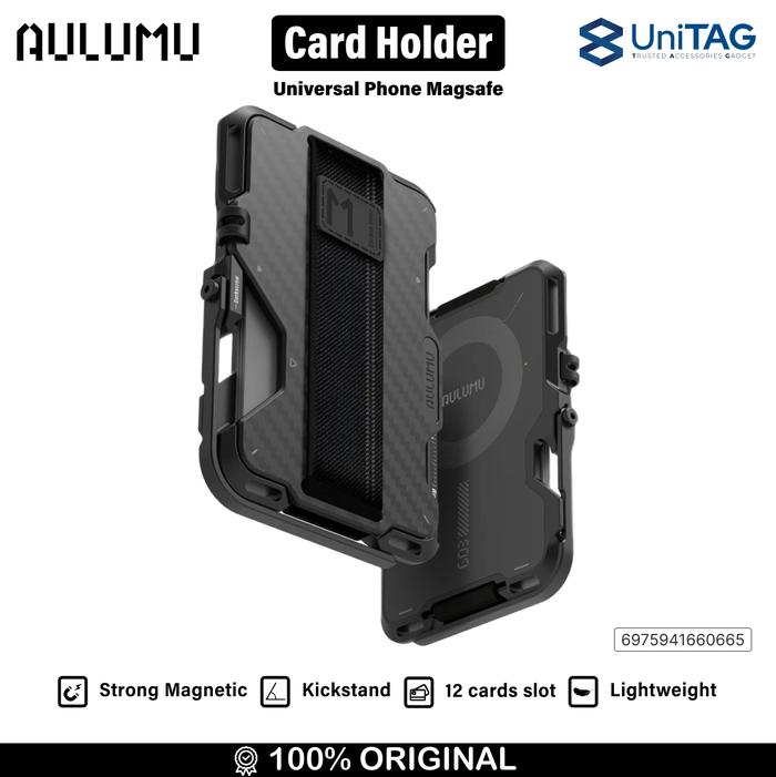 Card Holder MagSafe Aulumu Multi-Tool Magnetic Metal Wallet Carbon MagFit Dompet Kartu Kickstand for