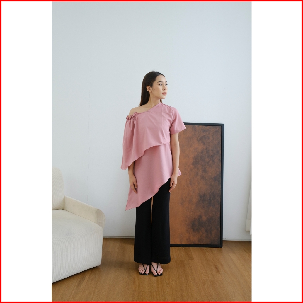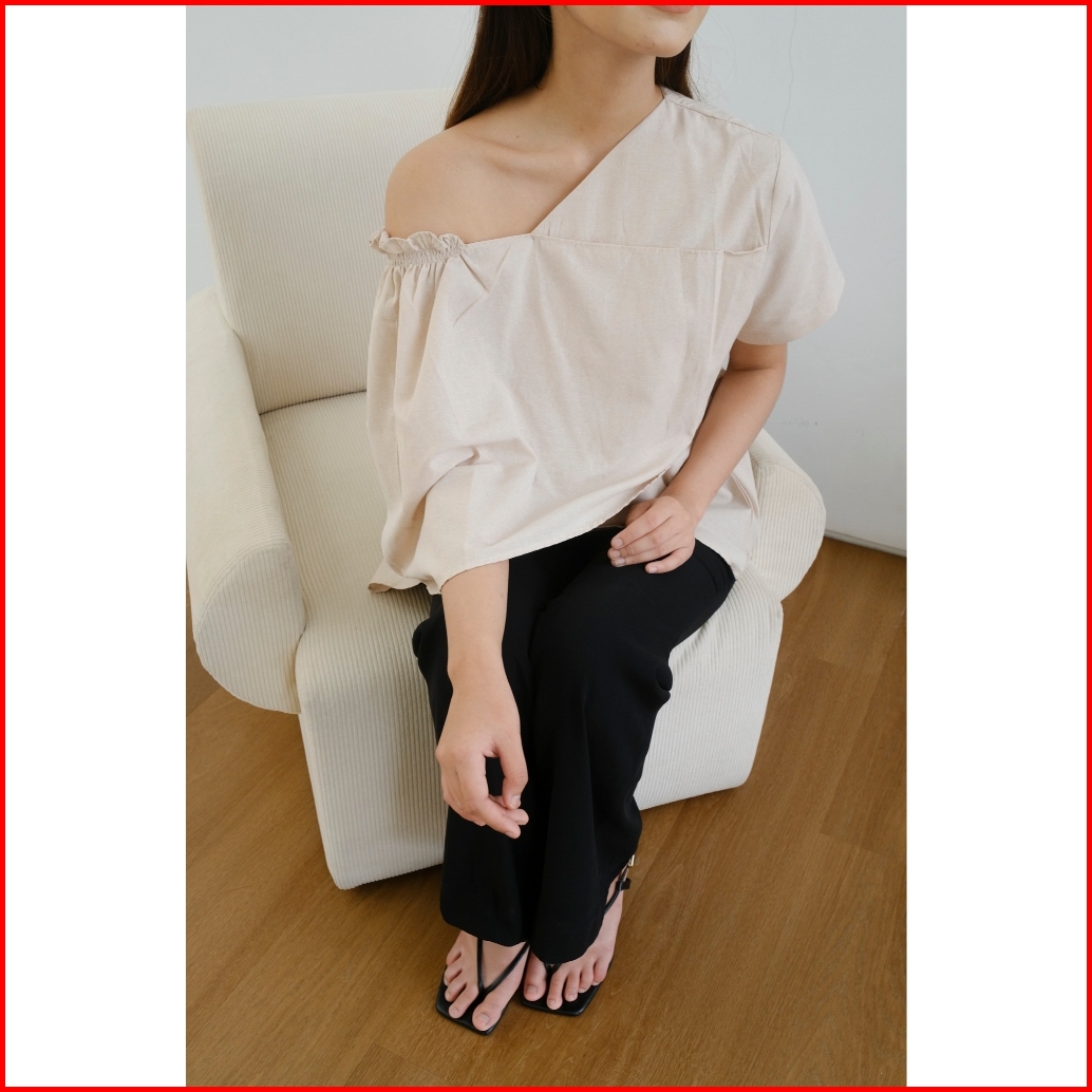 Shopataleen - Laura Top Off Shoulder Asymmetrical Sleeve Top Atasan Wanita Sabrina Pinterest Outfit