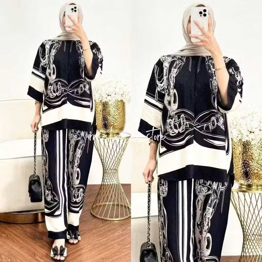 PROMO ONE SET Luna Setelan Celana Kulot Bahan Rayon Premium Busui JUMBO LD 110-120