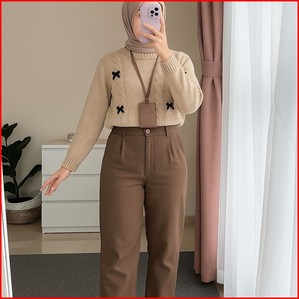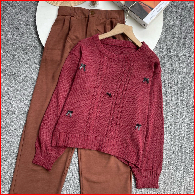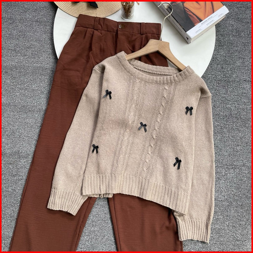 Vienetta Id - One Set Setelan Wanita Kekinian Sweater Cable Rajut Korean Style Setelan Ootd Outfit Wanita Cewek Remaja B