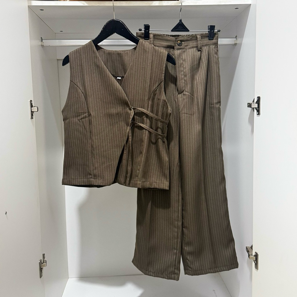 ALEEYA Setelan Celana Kulot Vest Wanita Tanpa Lengan Salur Bahan Semi Woll Premium (AIKO SETCEL)