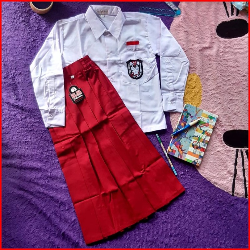 Seragam Sd Setelan Perempuan Kemeja Panjang Dan Rok Panjang