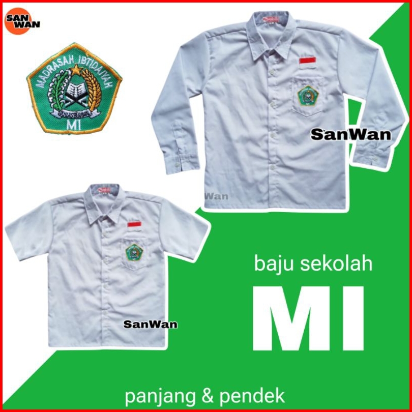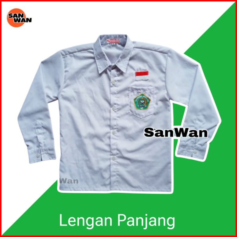 Baju Sekolah Mi Madrasah Ibtidaiyah Putih Lengan Panjang Pendek