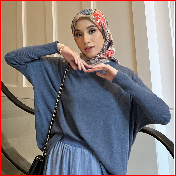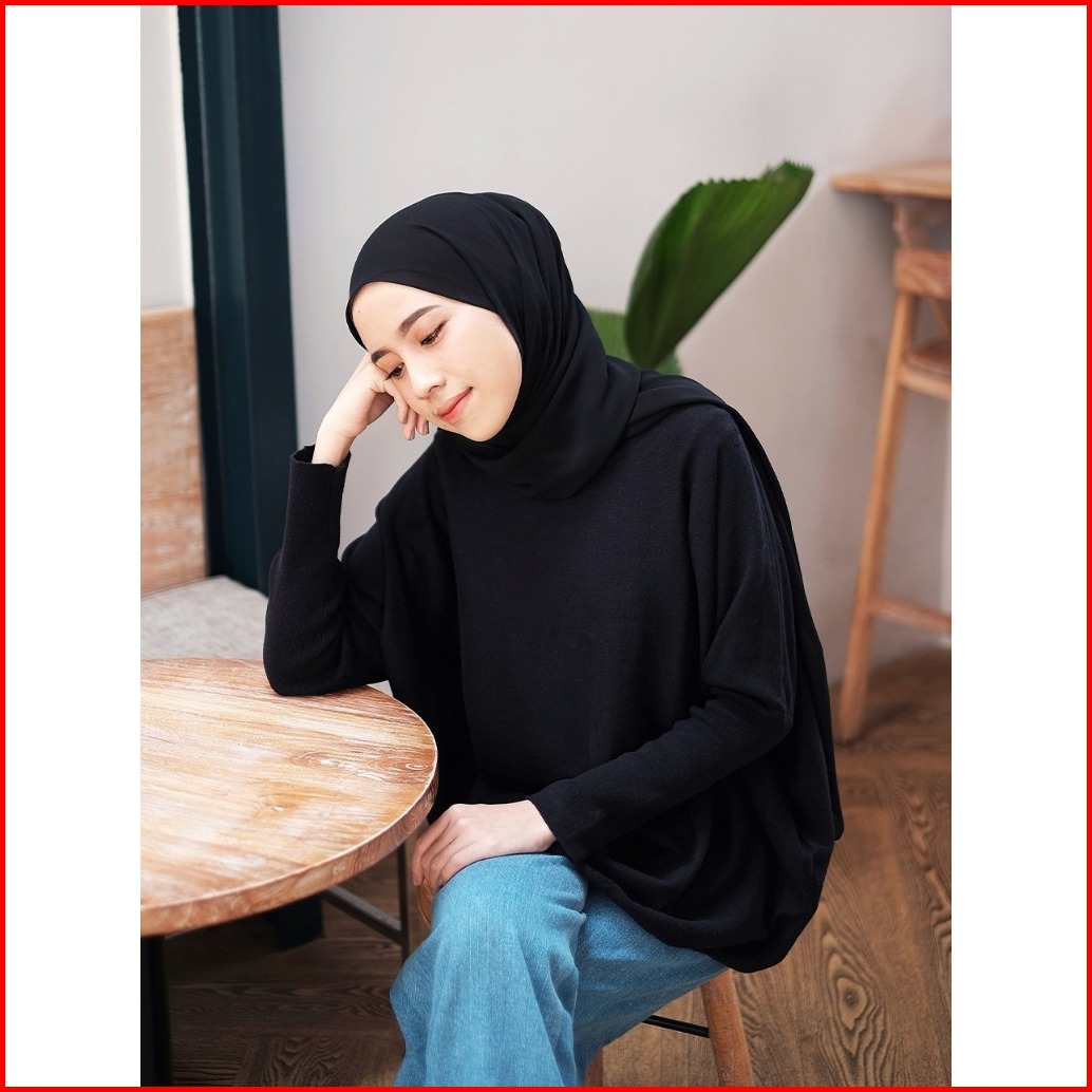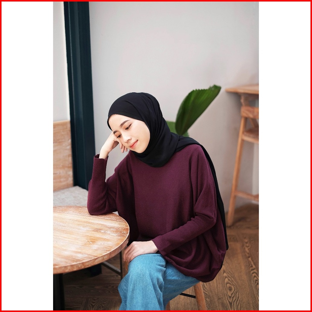 Gonegani - Atasan Wanita Polos Oversize Batwing Sweater