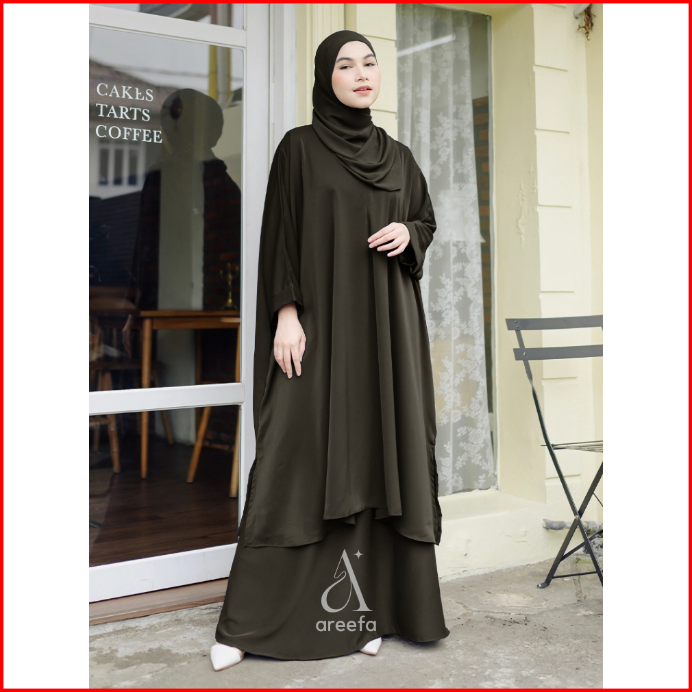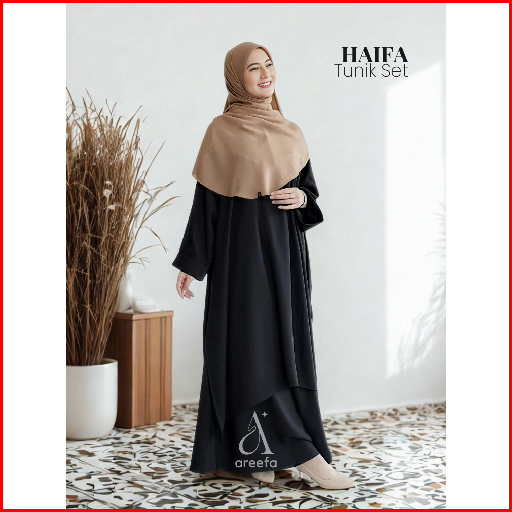 Areefa - Haifa Tunik One Set Rok Dan Atasan Syari One Set Tunic Skirt Melayu Bahan Marbella Premium