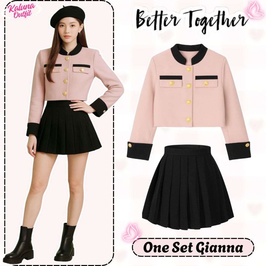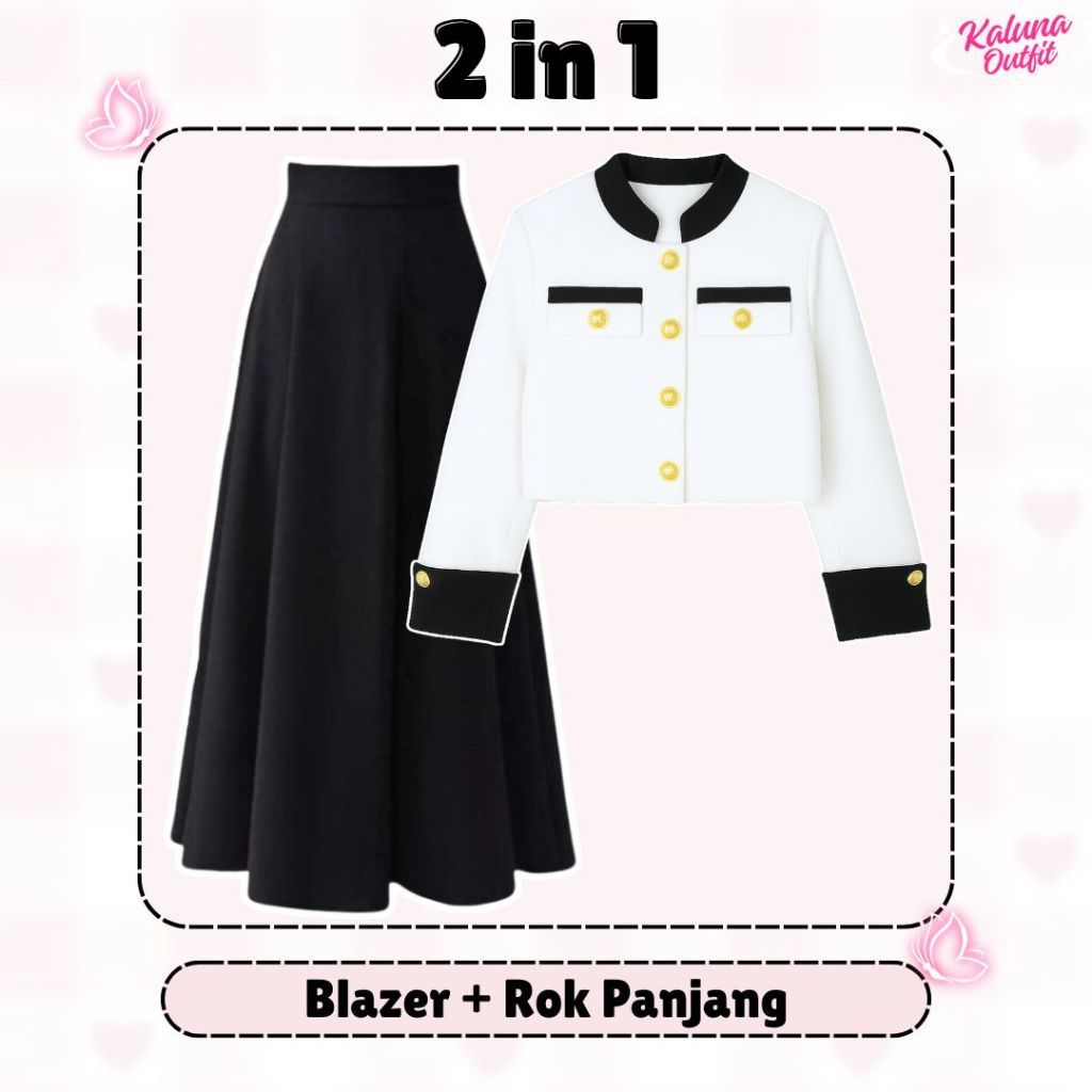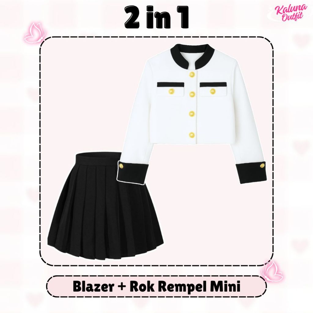 One Set Wanita ala Korean Style Blazer Kancing Scuba Premium, Rok Rempel Mini Katun Setelan Outfit Remaja Kekinian Viral