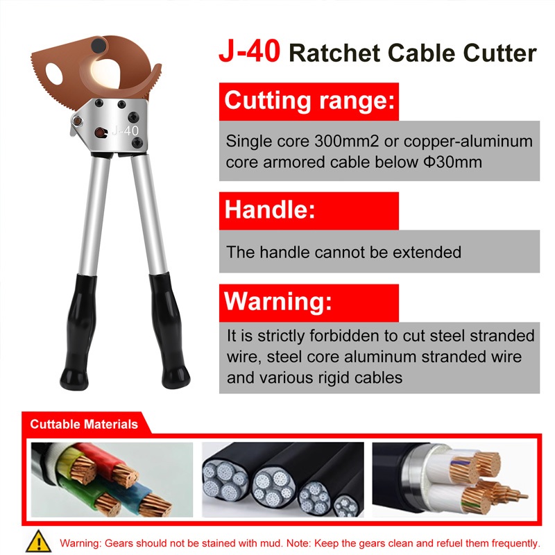 Convenyy Manual Pemotong Kabel Ratchet J-40 Alat Gunting Kabel Serbaguna Diameter Kawat Pemotong Maksimum 300Mm²
