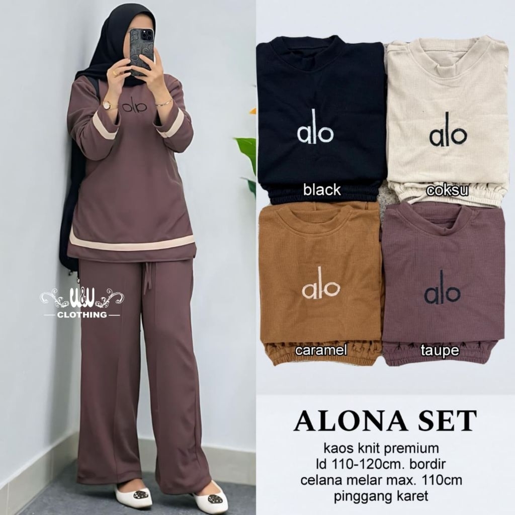 Setelan wanita trendy kekinian Alona set ori w&w clothing bahan kaos knit premium Ld110-120cm, celana pinggang karet