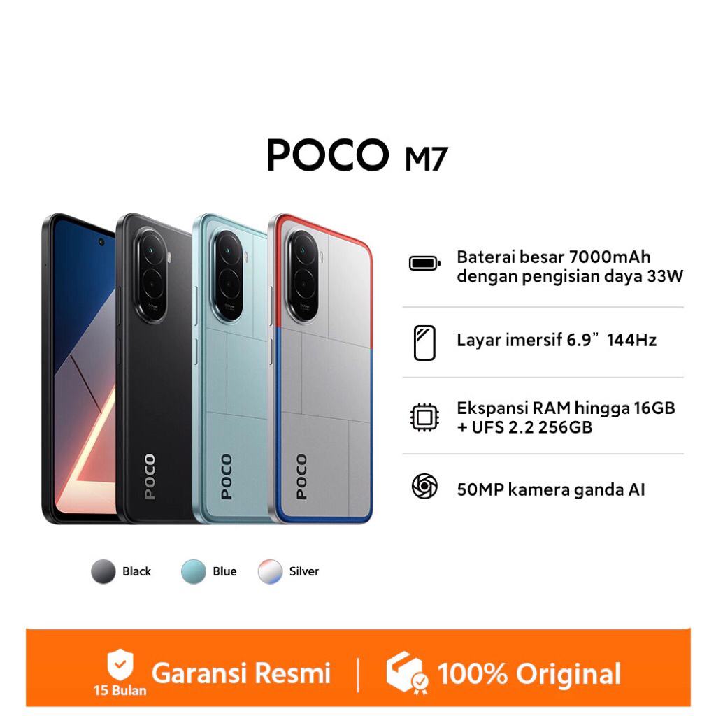 Poco M7 NFC 8/256GB Extended RAM 8GB - Snapdragon 685 - Layar DotDispaly 6.9 inci FHD+ - 50MP Kamera Ganda AI - Li-Po 7000mAh